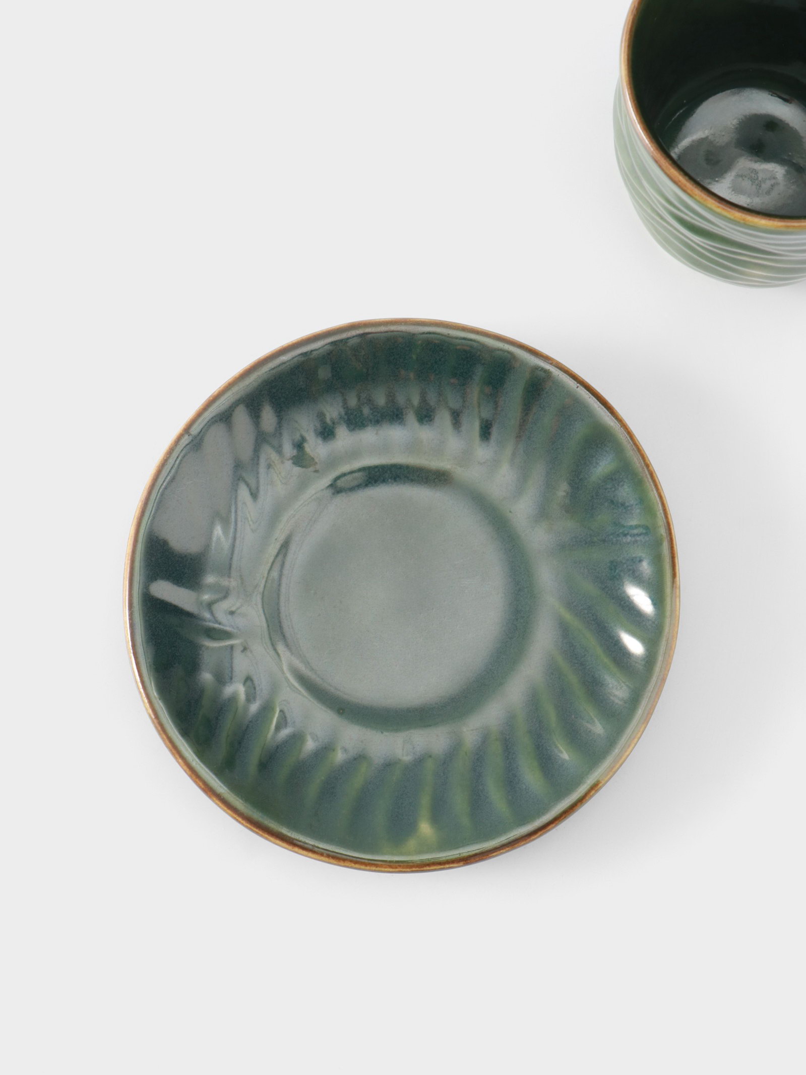 Чашка с блюдцем "Флора 2", 13x13x9 см, керамика, зелёная, 13x13x10 см., Индонезия