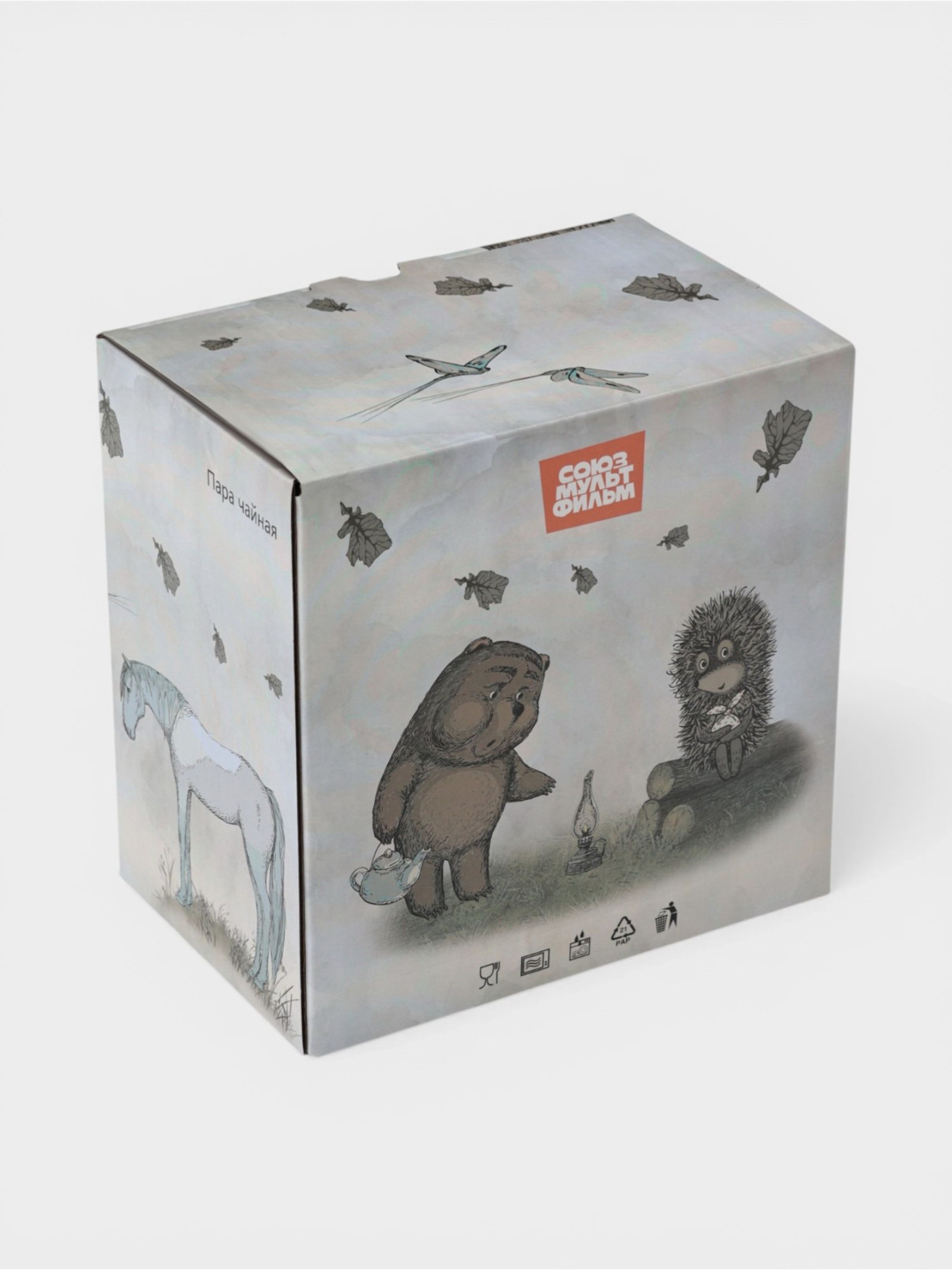 Размер упаковки: 11 x 17 x 17 см. tnved: 6911100000 Температурное ограничение: Нет Особенности: Деколь Цвет: Белый Количество персон: 1 Рисунок: Да Можно использовать в СВЧ-печи: Да Можно мыть в посудомоечной машине: Да Наличие подставки: Нет Тематика: Мультфильмы В наборе, шт.: 2 Текстура: Гладкая Чайная пара с "Ёжиком в тумане" это не просто чашка с блюдцем, а маленькая деталь, которая делает чаепитие теплее и уютнее. Белая фарфоровая основа подчёркивает рисунок, а увеличенный объём хорошо подходит для чая, какао, кофе с молоком и других любимых напитков. Такой набор легко становится частью домашнего ритуала спокойного, знакомого и по-настоящему атмосферного. Особенности
