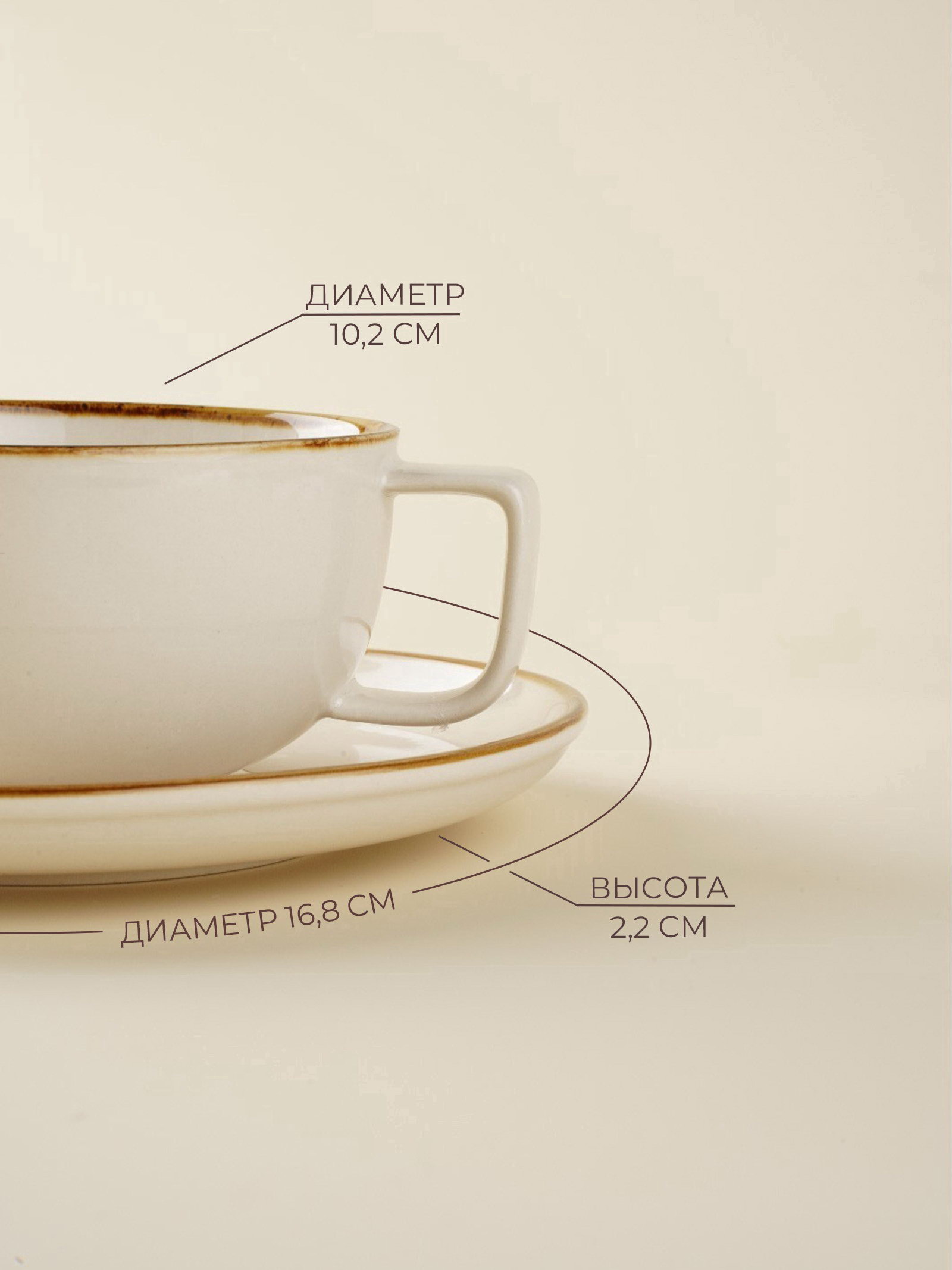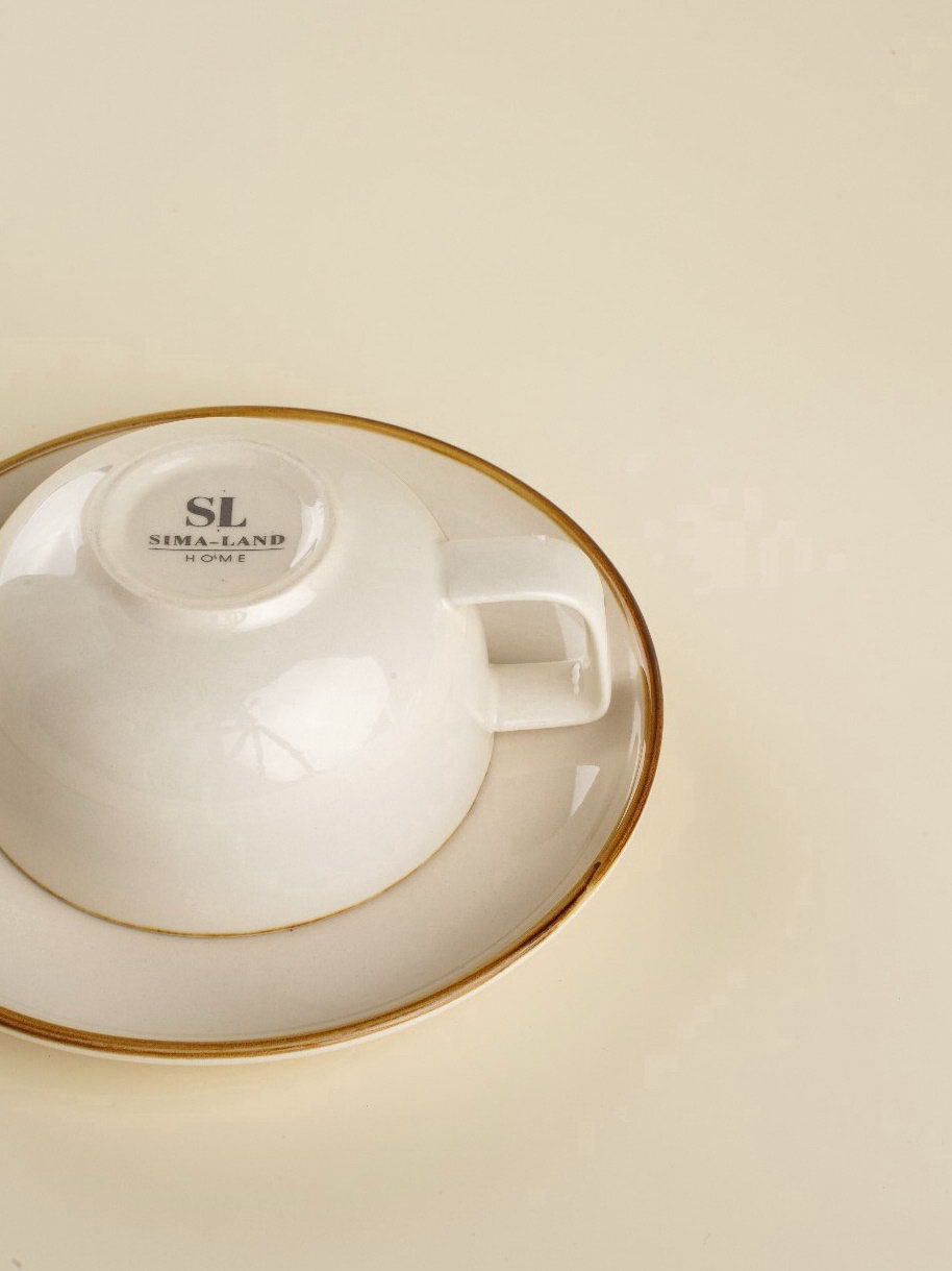 УЦЕНКА Чайная пара "Леггеро", чашка 300 мл, бежевая, 14x14x6.5 см., Sima-Land Home, Китай