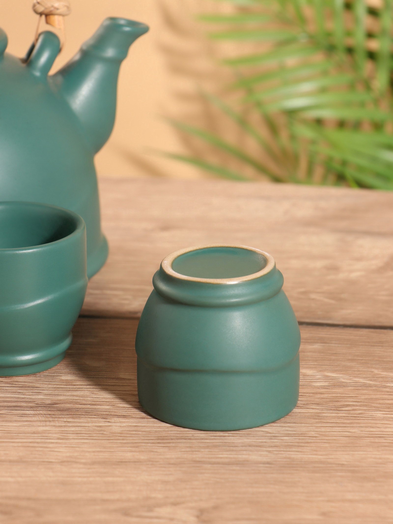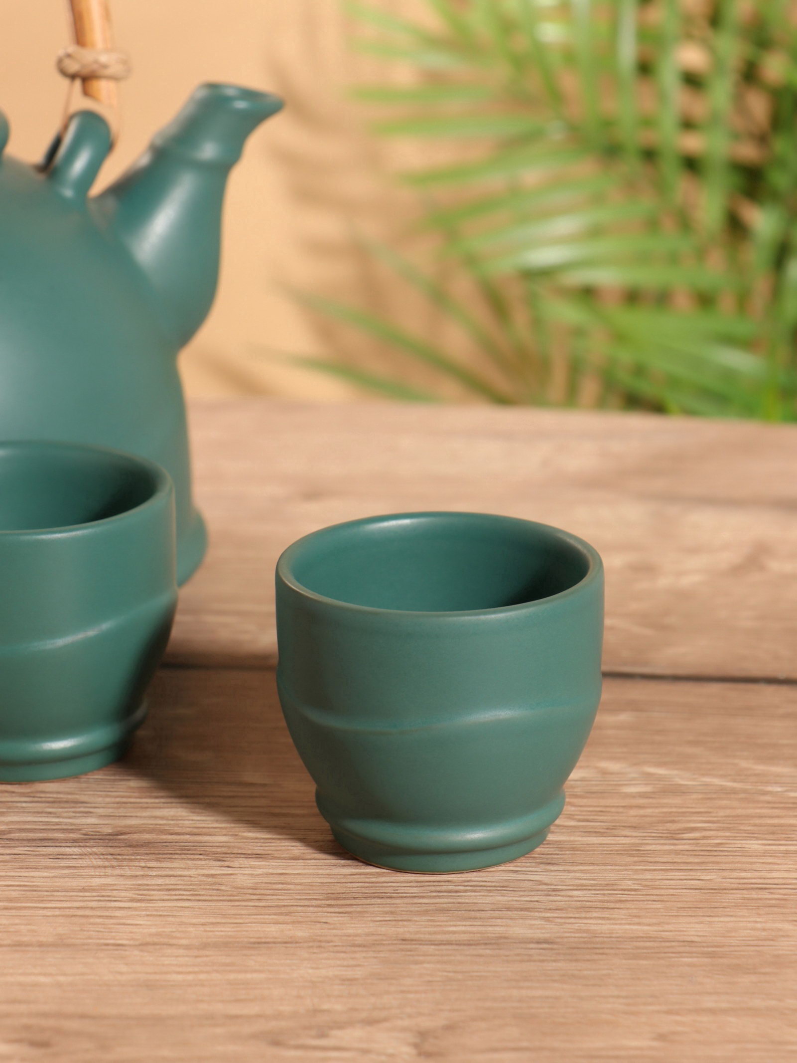 Набор для чаепития "Аху", чайник, 2 стакана, керамика, зелёный, 23x18x23 см., Индонезия
