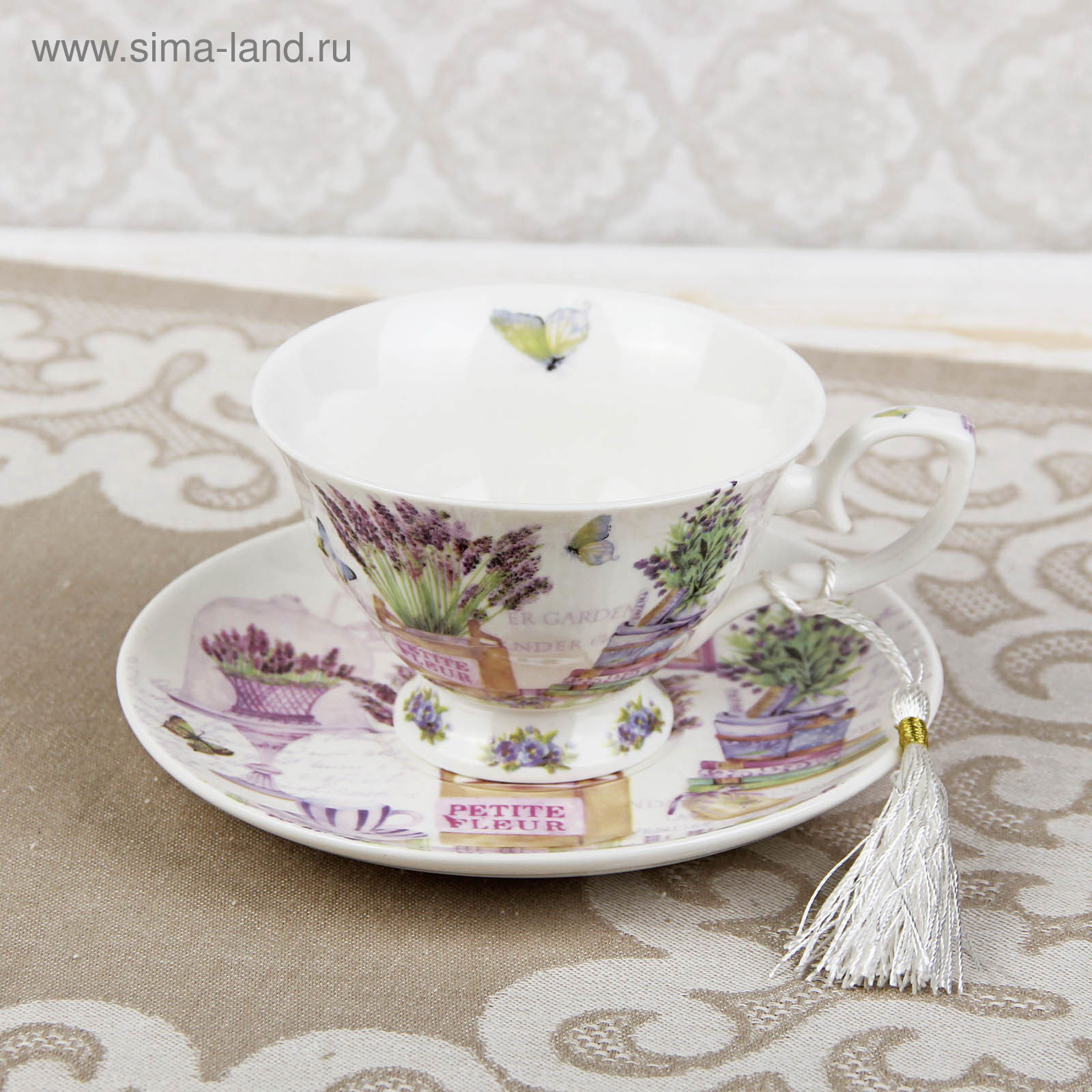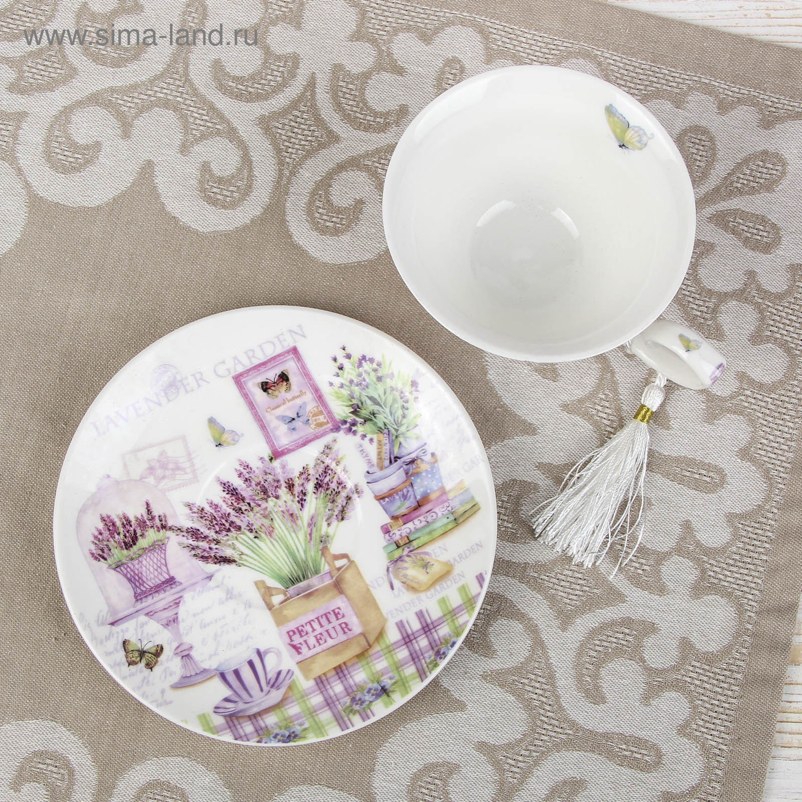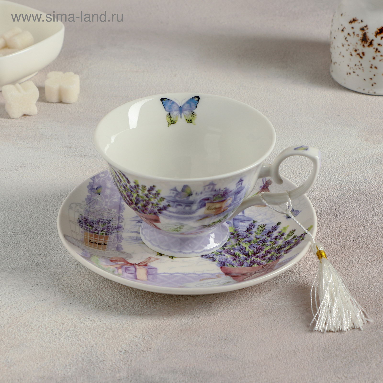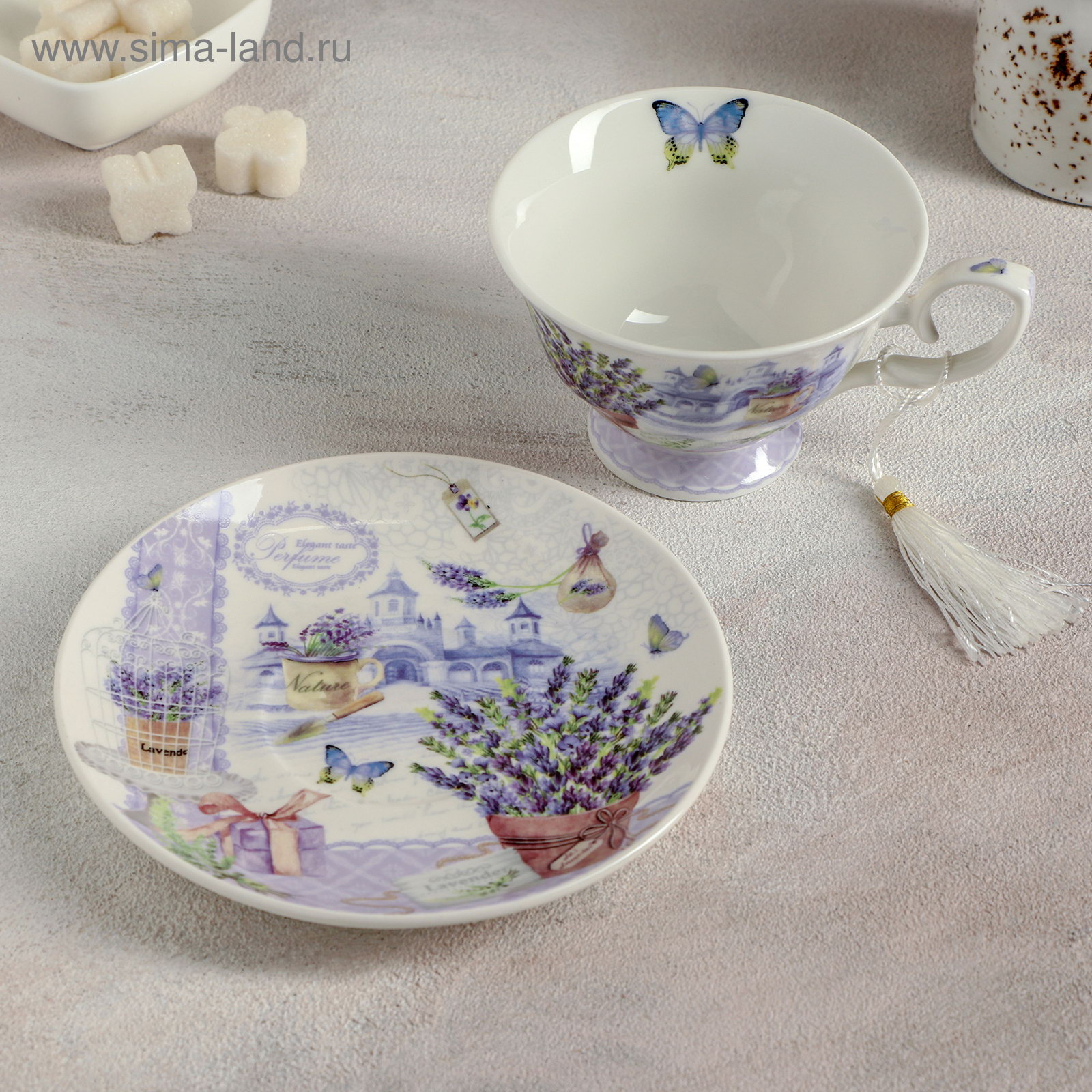 Чайная пара керамическая "Лавандовое поле", 2 предмета: чашка 220 мл, блюдце d=15 см, 16.5x16.5x8 см., Китай