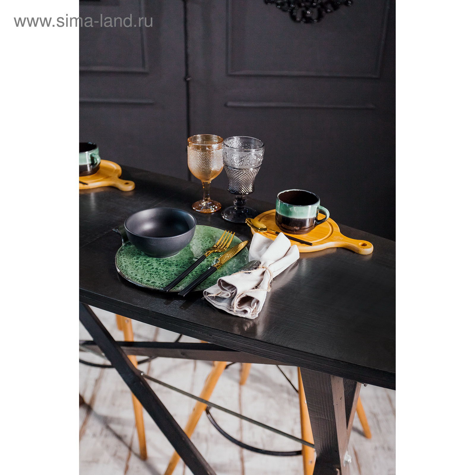 Чайная пара Verde notte, чашка 200 мл, блюдце d=15.5 см, фарфор, чёрная, зелёная, 200 мл., Хорекс, Россия