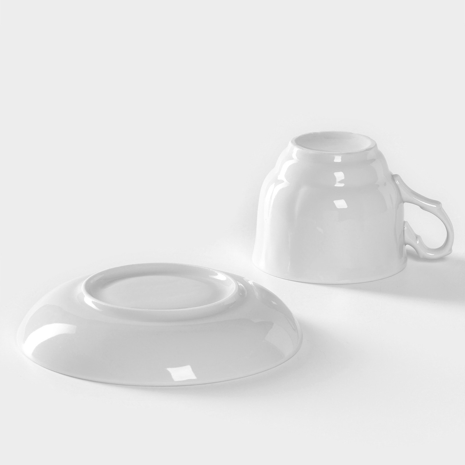 Чайная пара Добрушский завод "Бельё", 2 предмета: чашка 240 мл, блюдце d=14.8 см, фарфор, белая, 8.7х8.7х8 см., Добрушский фарфоровый завод, Беларусь