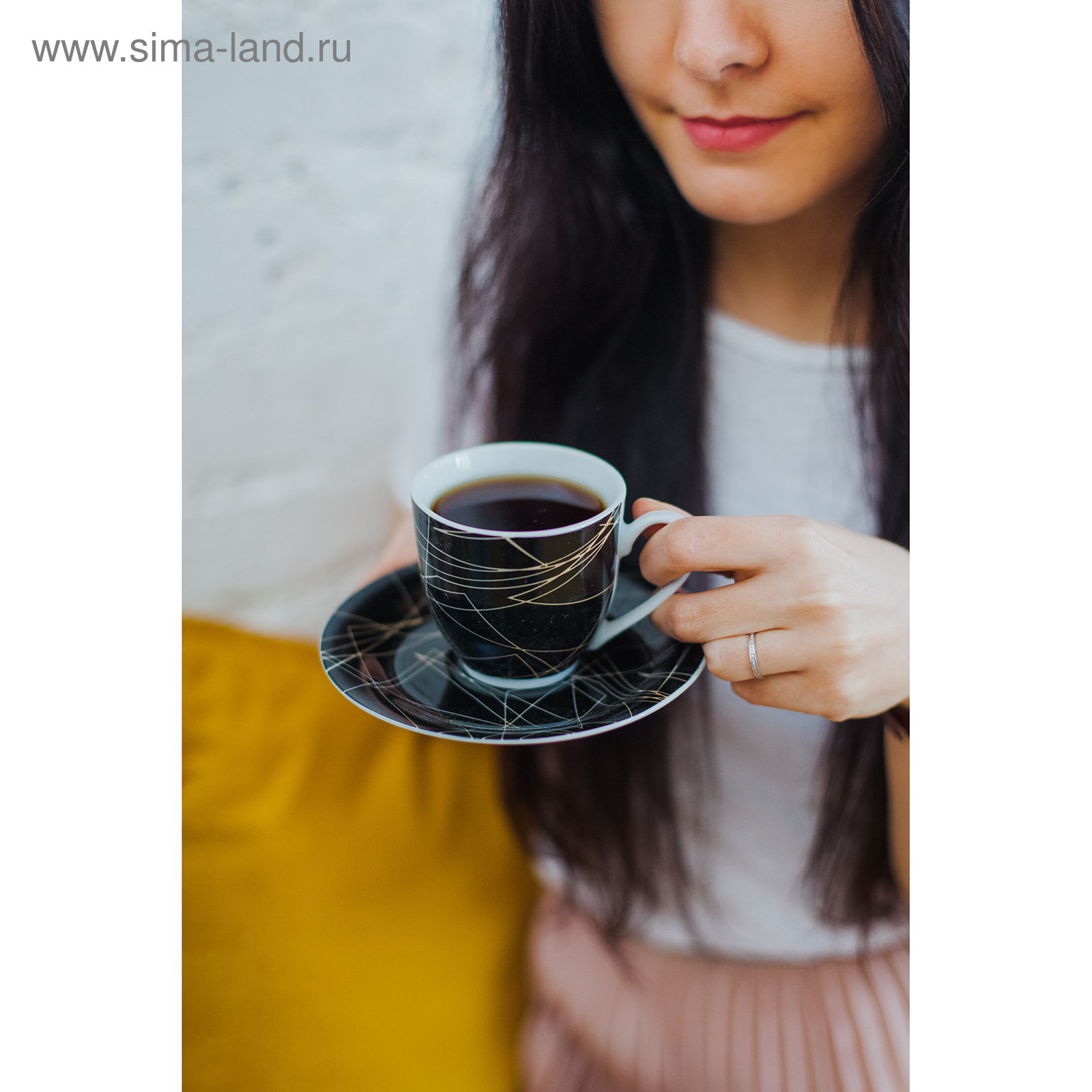 Чайная пара "Кассиопея", 2 предмета: чашка 200 мл, блюдце d=14.5 см, керамика, 15x15x10 см., Доляна, Китай