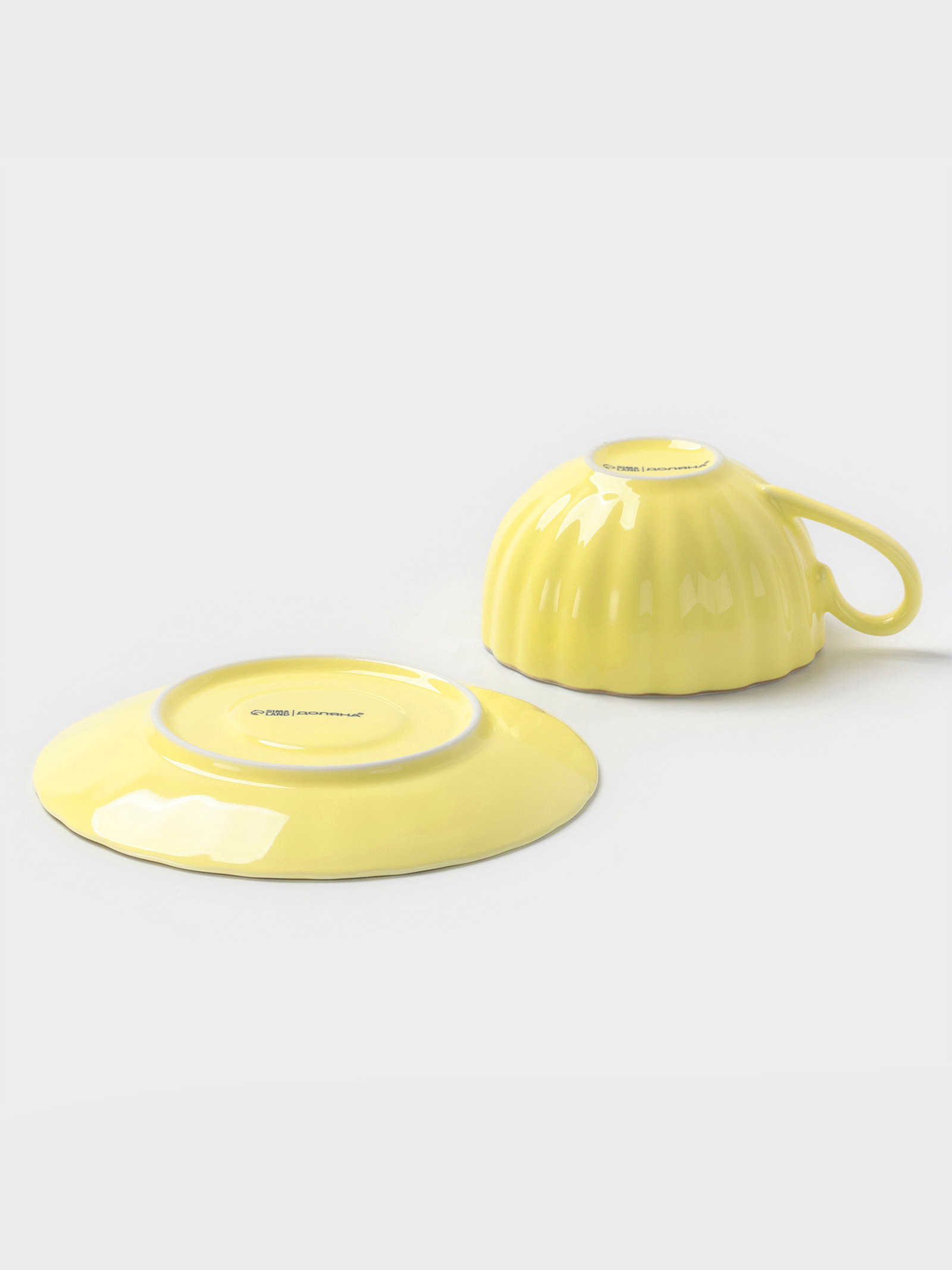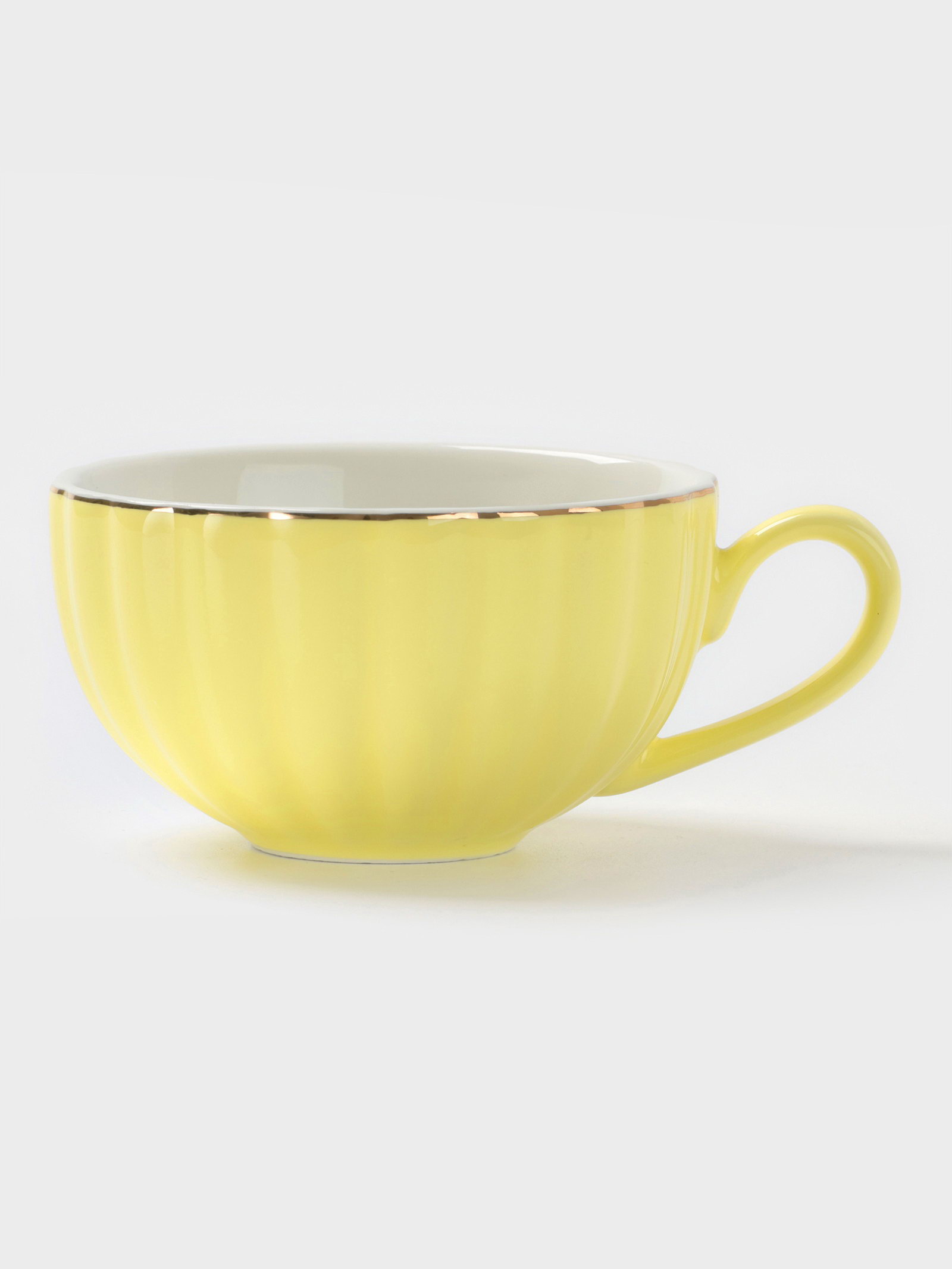 Чайная пара "Вивьен", 2 предмета: чашка 200 мл, блюдце d=15 см, фарфор, жёлтая, 15x15x6.5 см., Доляна, Китай