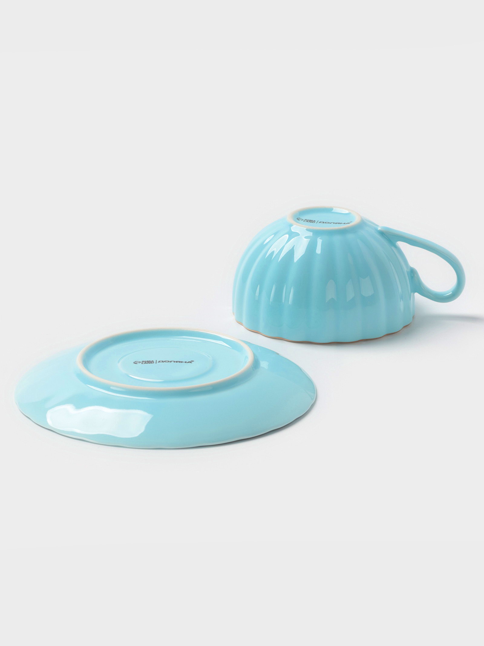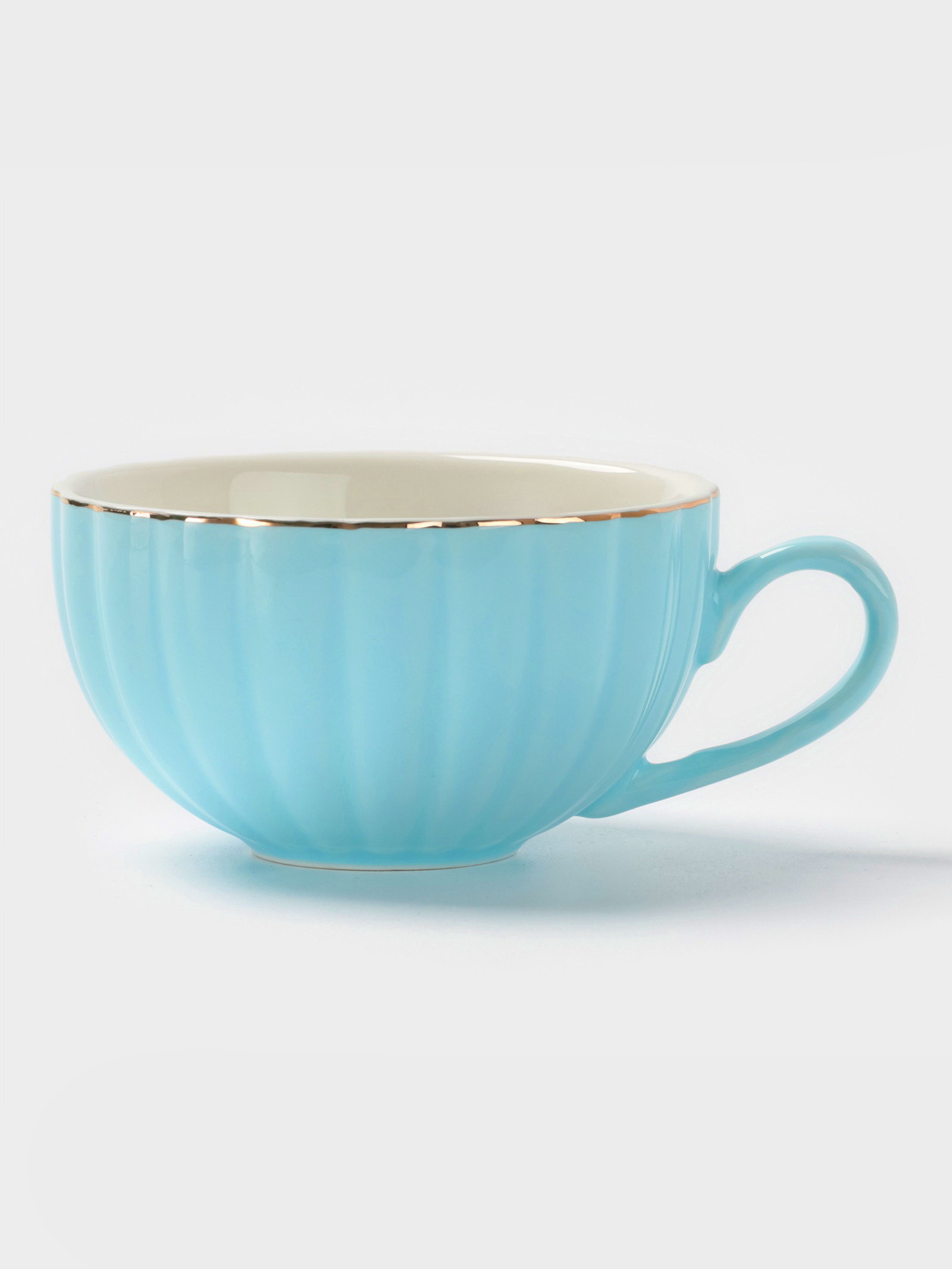 Чайная пара "Вивьен", 2 предмета: чашка 200 мл, блюдце d=15 см, фарфор, голубая, 15x15x6.5 см., Доляна, Китай