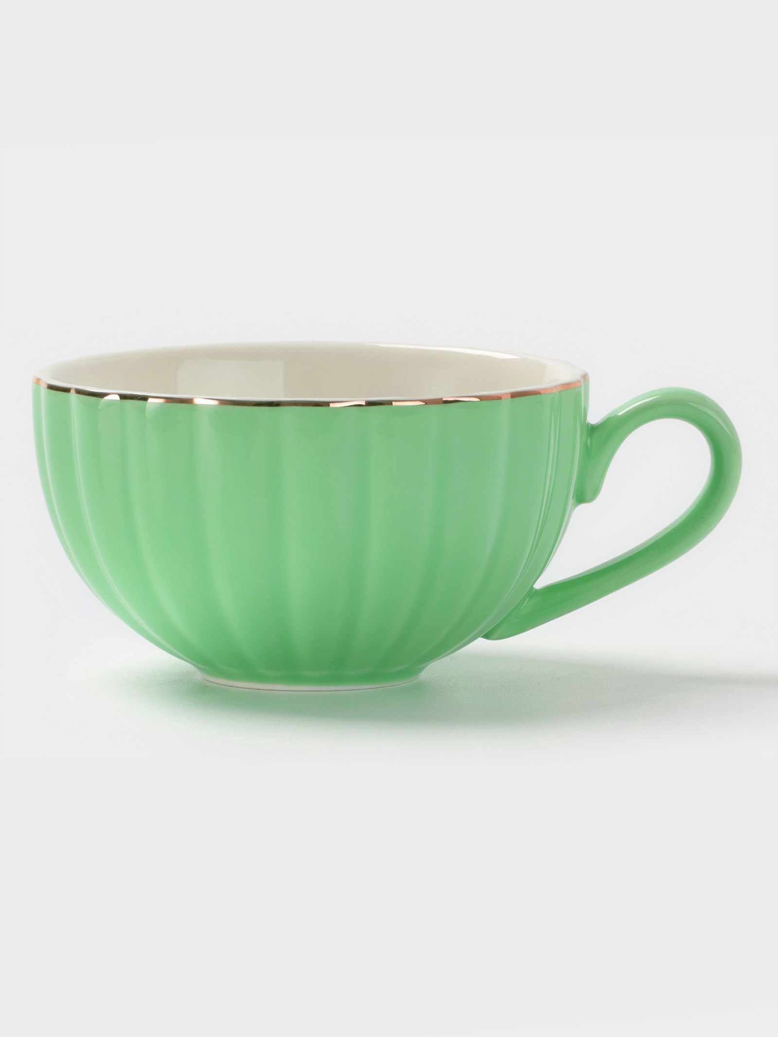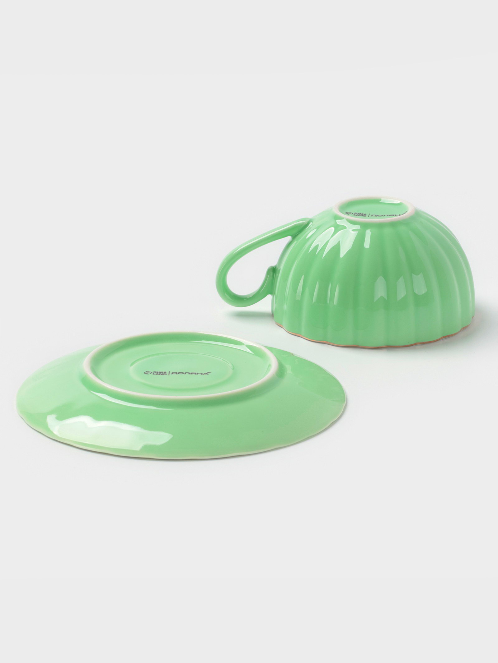 Чайная пара "Вивьен", 2 предмета: чашка 200 мл, блюдце d=15 см, фарфор, зелёная, 9x13x11.5 см., Доляна, Китай