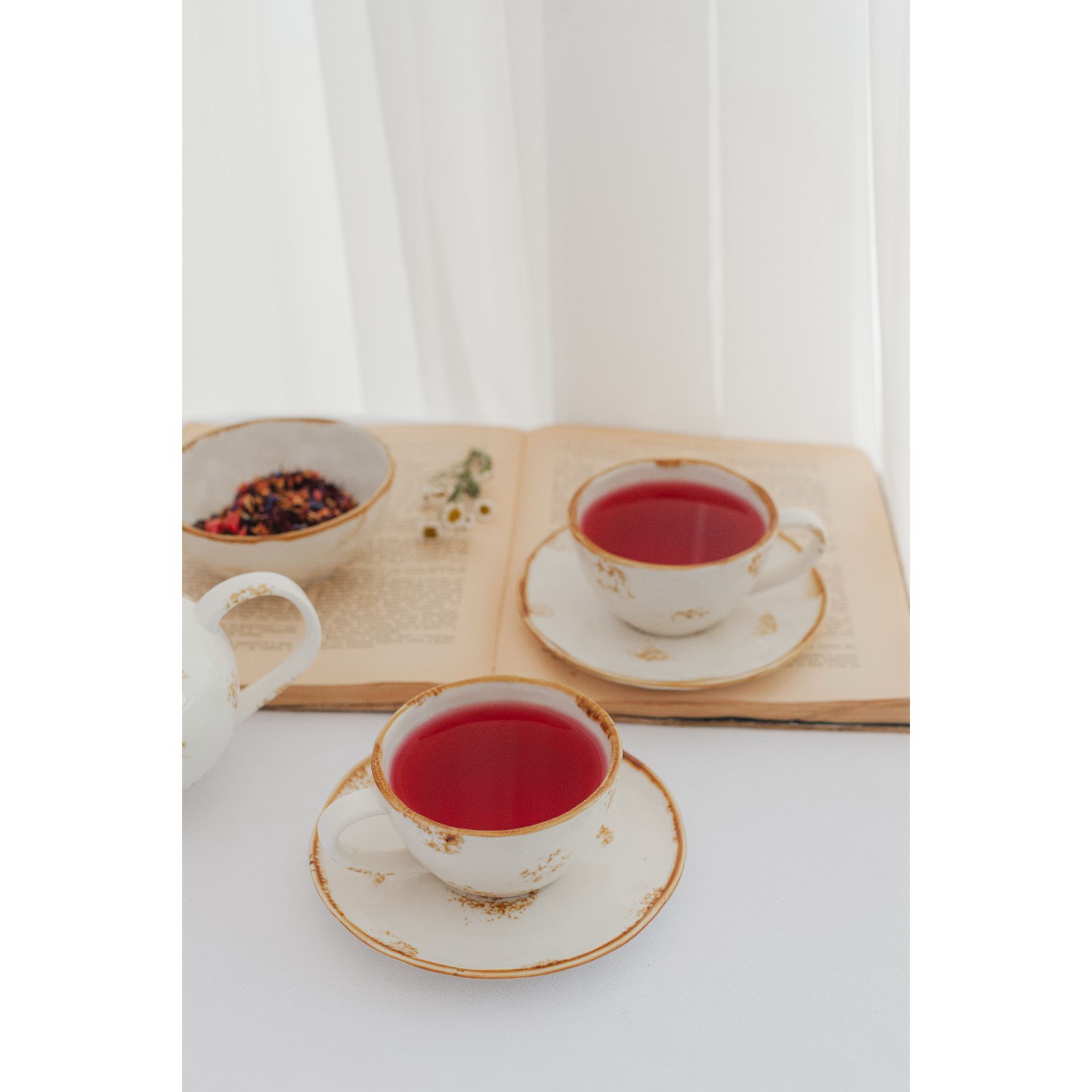 Чайная пара Organic Gold, чашка 230 мл, блюдце d=16 см, фарфор, белая, 16х16х1.8 см., Доляна, Китай