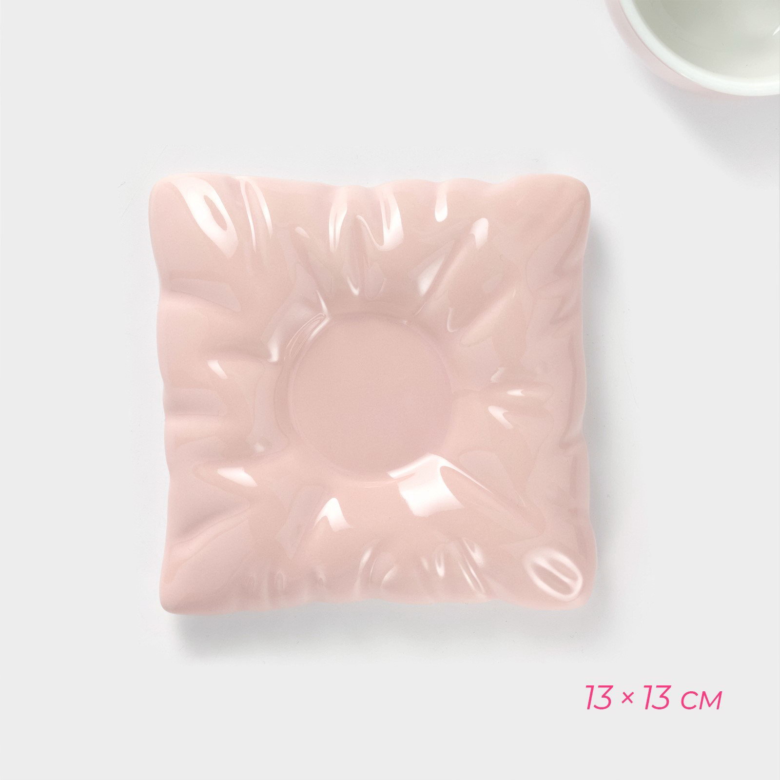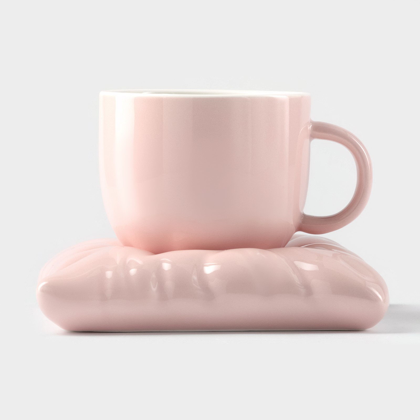 Чайная пара керамическая с ложкой "Зефирка", 2 предмета: чашка 250 мл, блюдце d=13 см, цвет розовый, 13x13x9 см., Китай