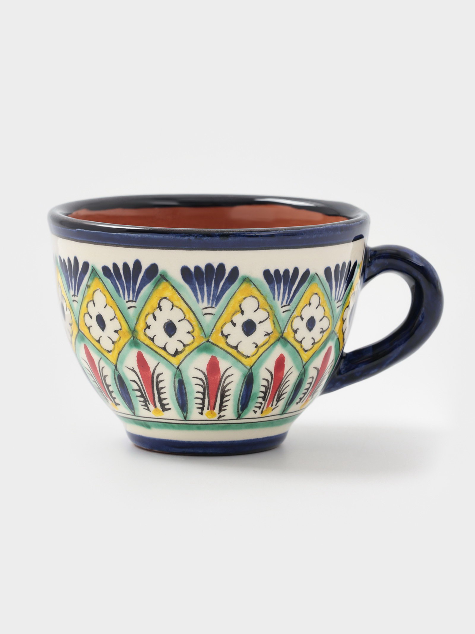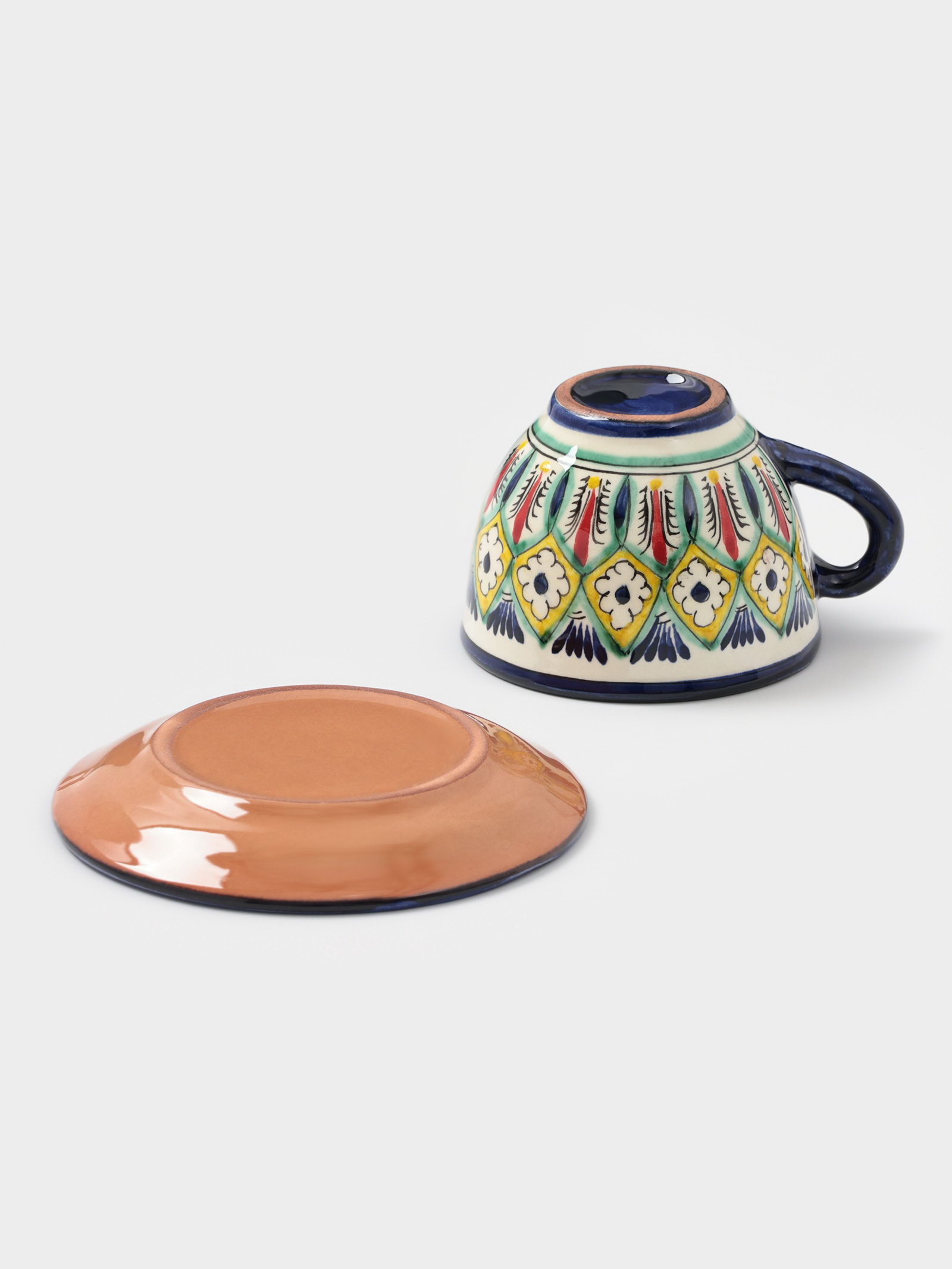 Чайная пара Риштанская Керамика "Цветы", 2 предмета: чашка 200 мл, блюдце, синяя, 200 мл., Шафран, Узбекистан