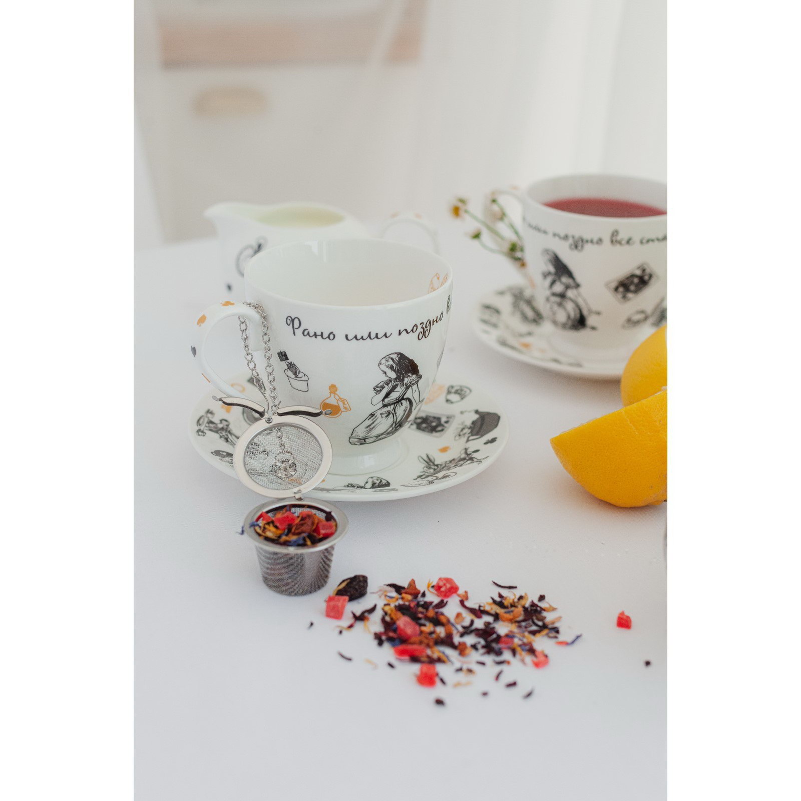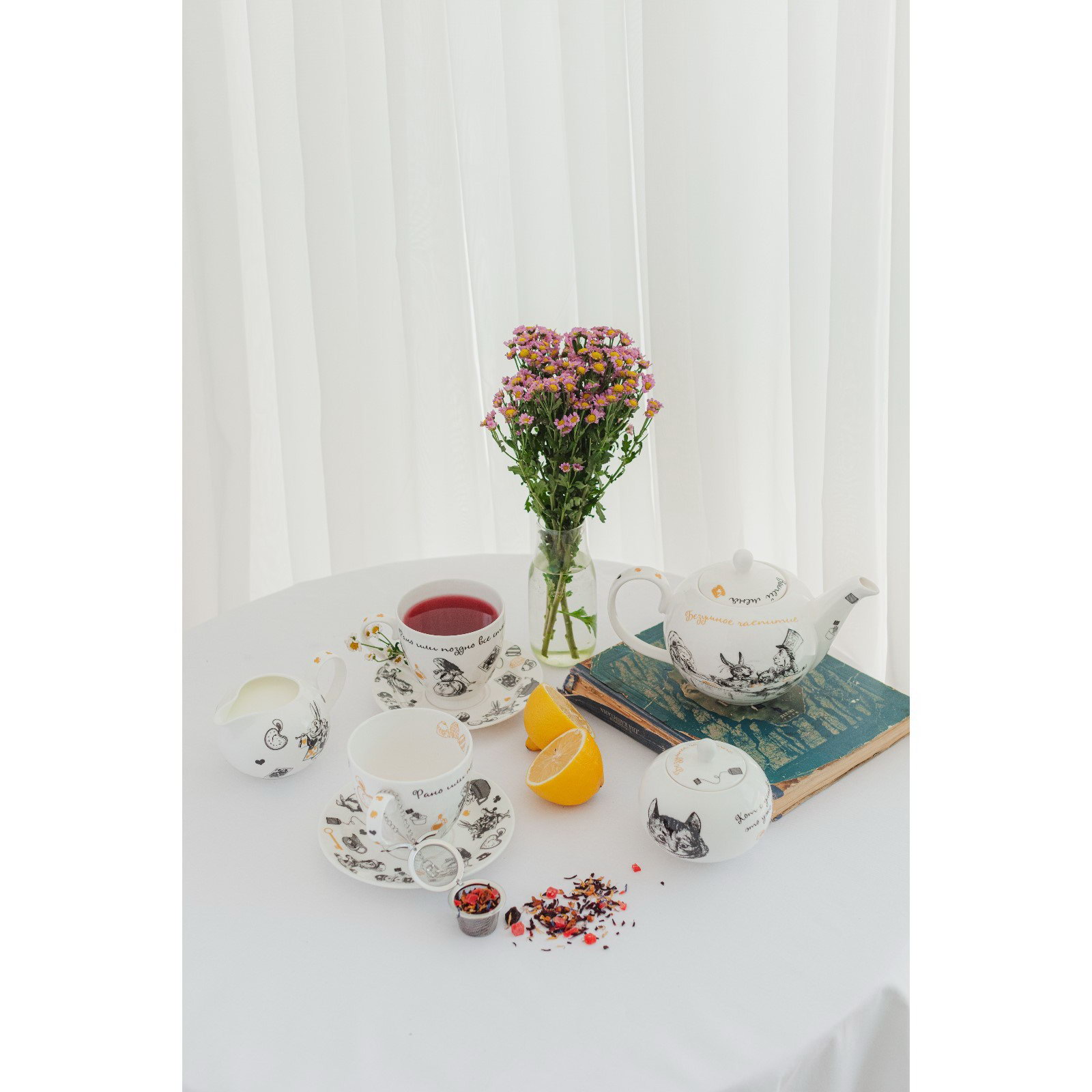 Чайная пара "Безумное чаепитие", чашка 440 мл, блюдце d=17 см, фарфор, белая, 440 мл., Quinsberry, Китай