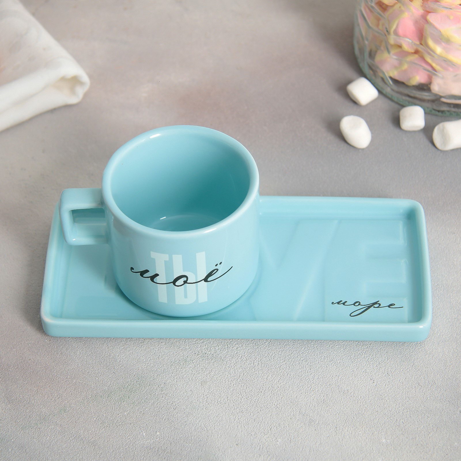 Чайная пара "Ты мое море", кружка 150 мл, блюдце 17.5х8 см, 8x6.8x17.5 см., Дорого внимание, Китай