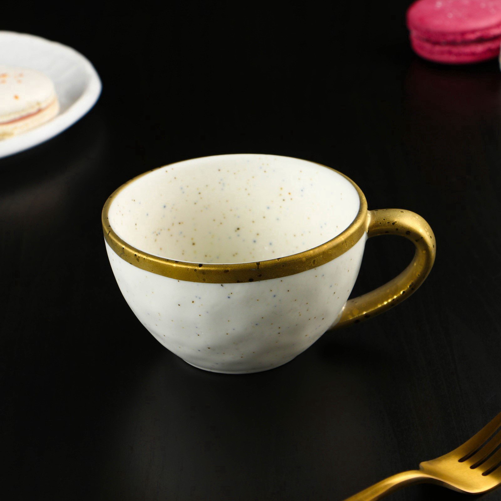 Размер упаковки: 16 x 7.5 x 16.5 см. Цвет: Белый tnved: 6911100000 Наличие подставки: Нет Количество персон: 1 Можно мыть в посудомоечной машине: Нет Можно использовать в СВЧ-печи: Нет Тип: Кофейная пара Тематика: В крапинку Текстура: Гладкая Матовая поверхность: Да Набор: Да В наборе, шт.: 2 Особенности: С золотой отводкой Запрет реализации по сегментам: 00000000485 Дополнительный аксессуар: Без аксессуаров Рисунок: Да Кофейная пара Poursephona не просто чашка с блюдцем, а тихий ритуал для тех, кто ценит момент. Белый матовый фарфор с золотой отводкой и крапинкой не кричит о роскоши он говорит о ней шёпотом, как хорошая книга на утреннем столе. Объём 250 мл не для спешки, а для того, чтобы напиток оставался тёплым дольше, чем разговор. Это не посуда для показа. Это то, что выбирают, когда хотят начать день не с будильника, а с себя. Особенности