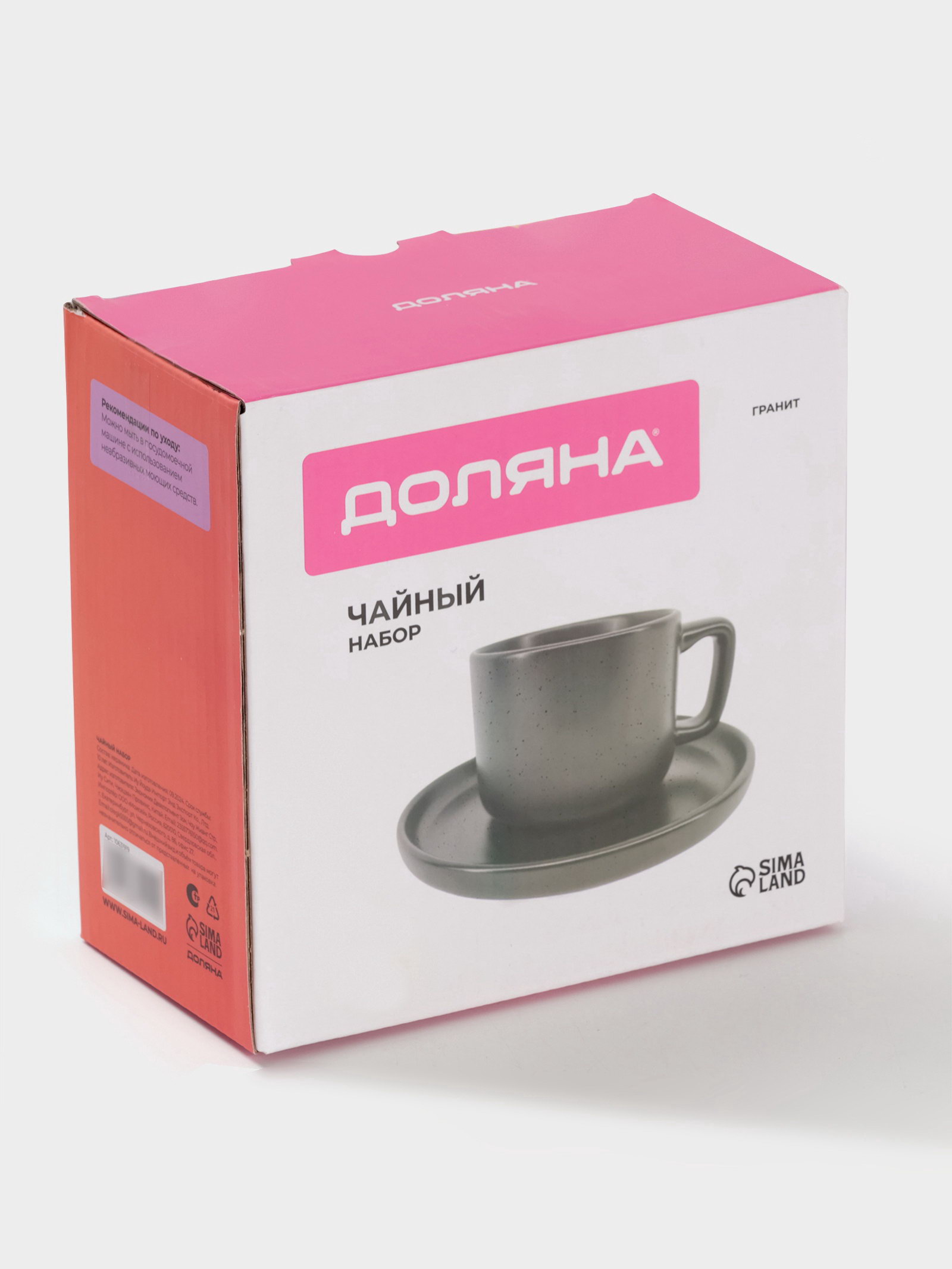 Чайная пара "Гранит", 2 предмета: чашка d=270 мл, блюдце d=15.5 см, керамика, серая, 9x13x9 см., Доляна, Китай