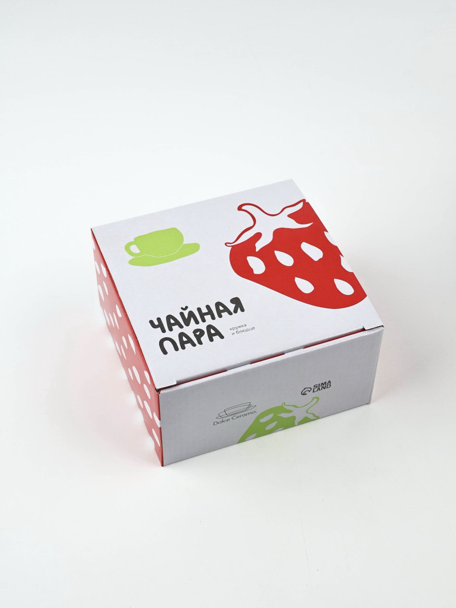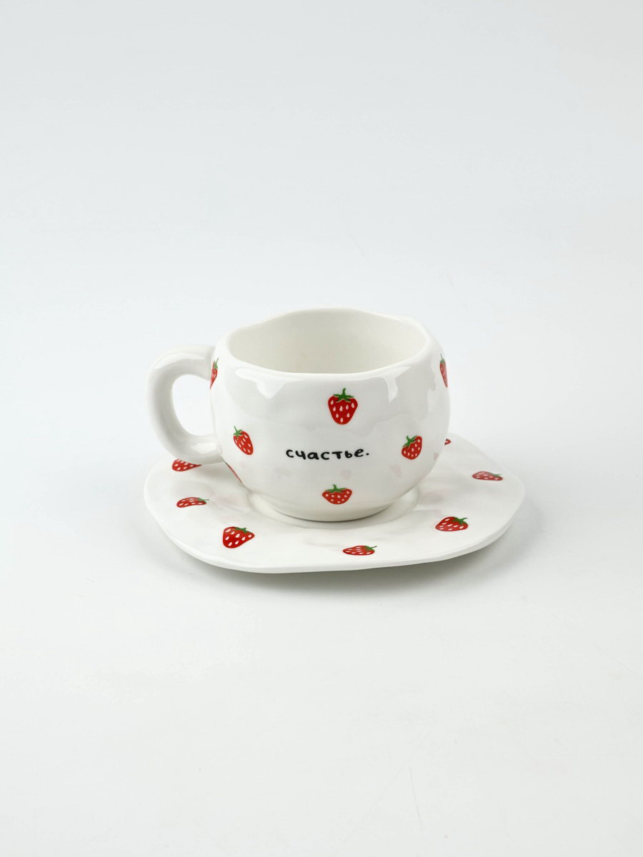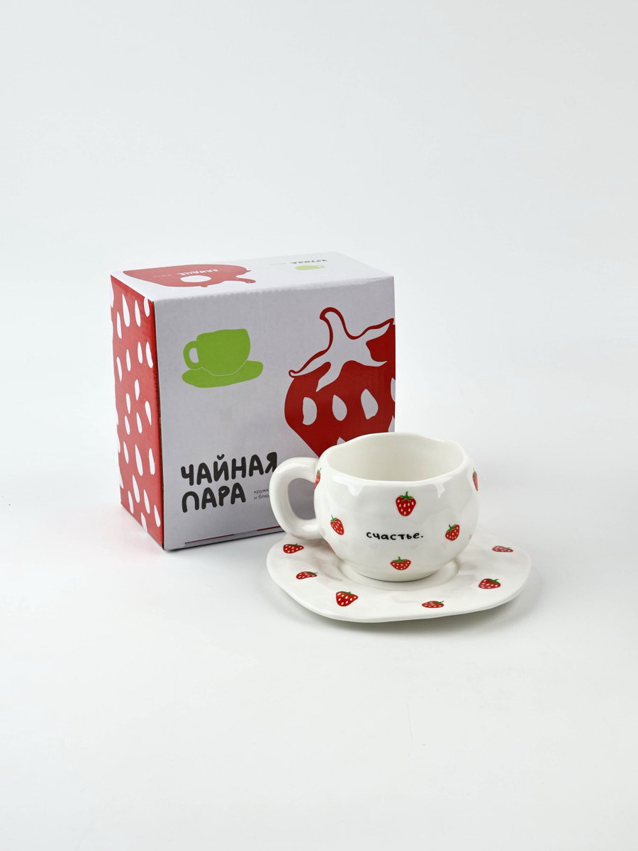 Чайная пара "Клубничка", 300 мл, 9.5x7x15.5 см., Dolce Ceramo., Китай