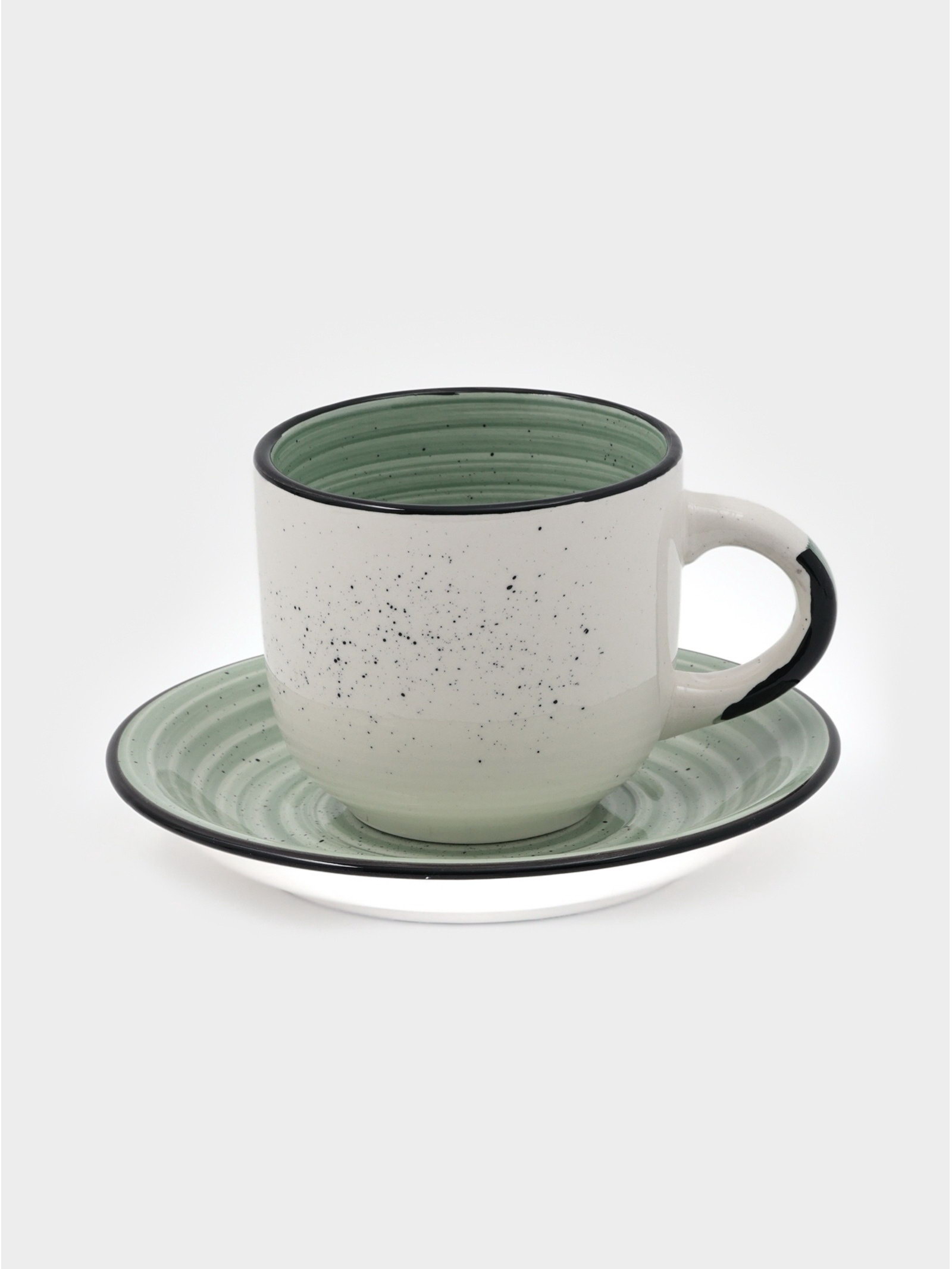 Чайная пара Nature, 2 предмета: чашка 260 мл, блюдце d=15 см, керамика, зелёная, 15.2x15.2x10 см., Доляна, Китай