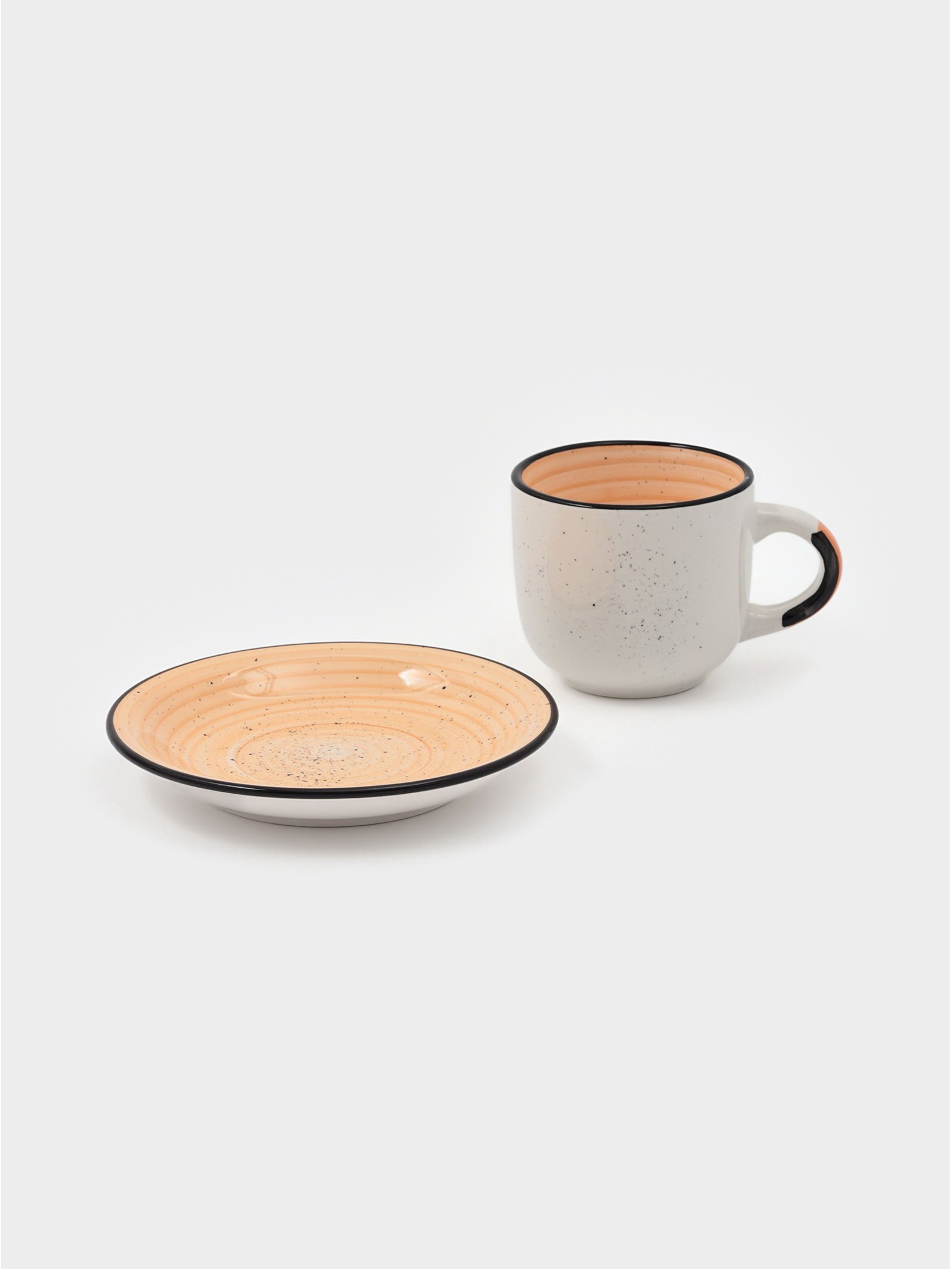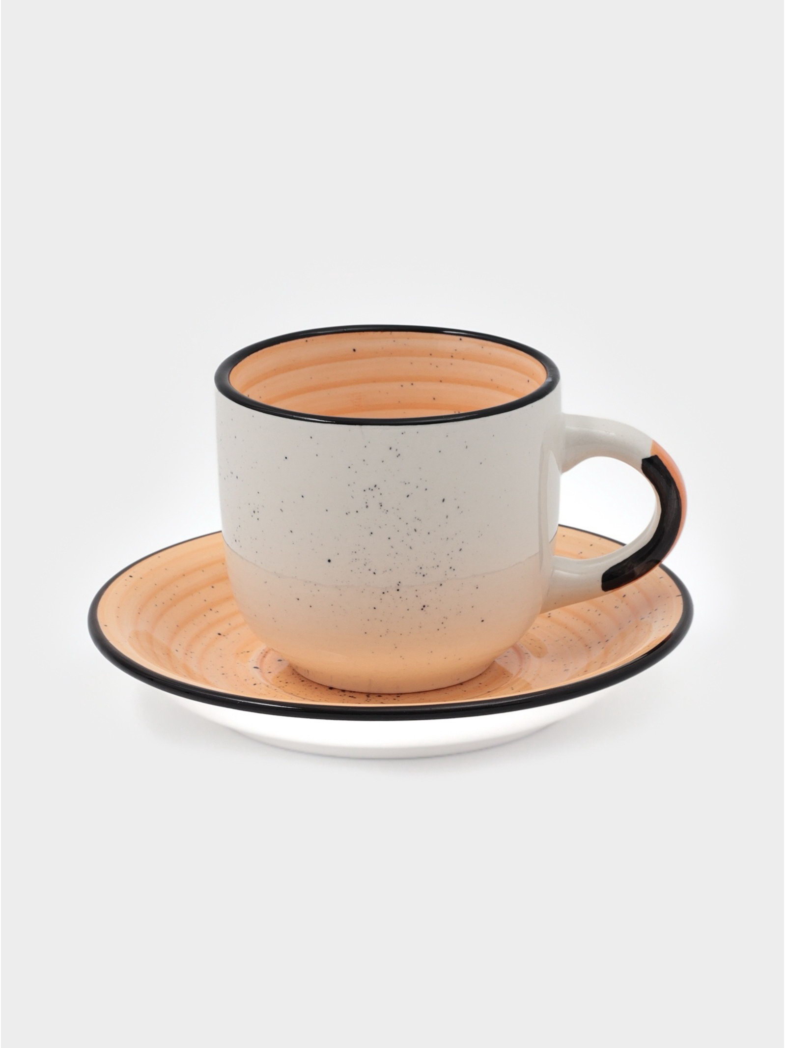 Чайная пара Nature, 2 предмета: чашка 260 мл, блюдце d=15 см, керамика, оранжевая, 15.2x15.2x10 см., Доляна, Китай