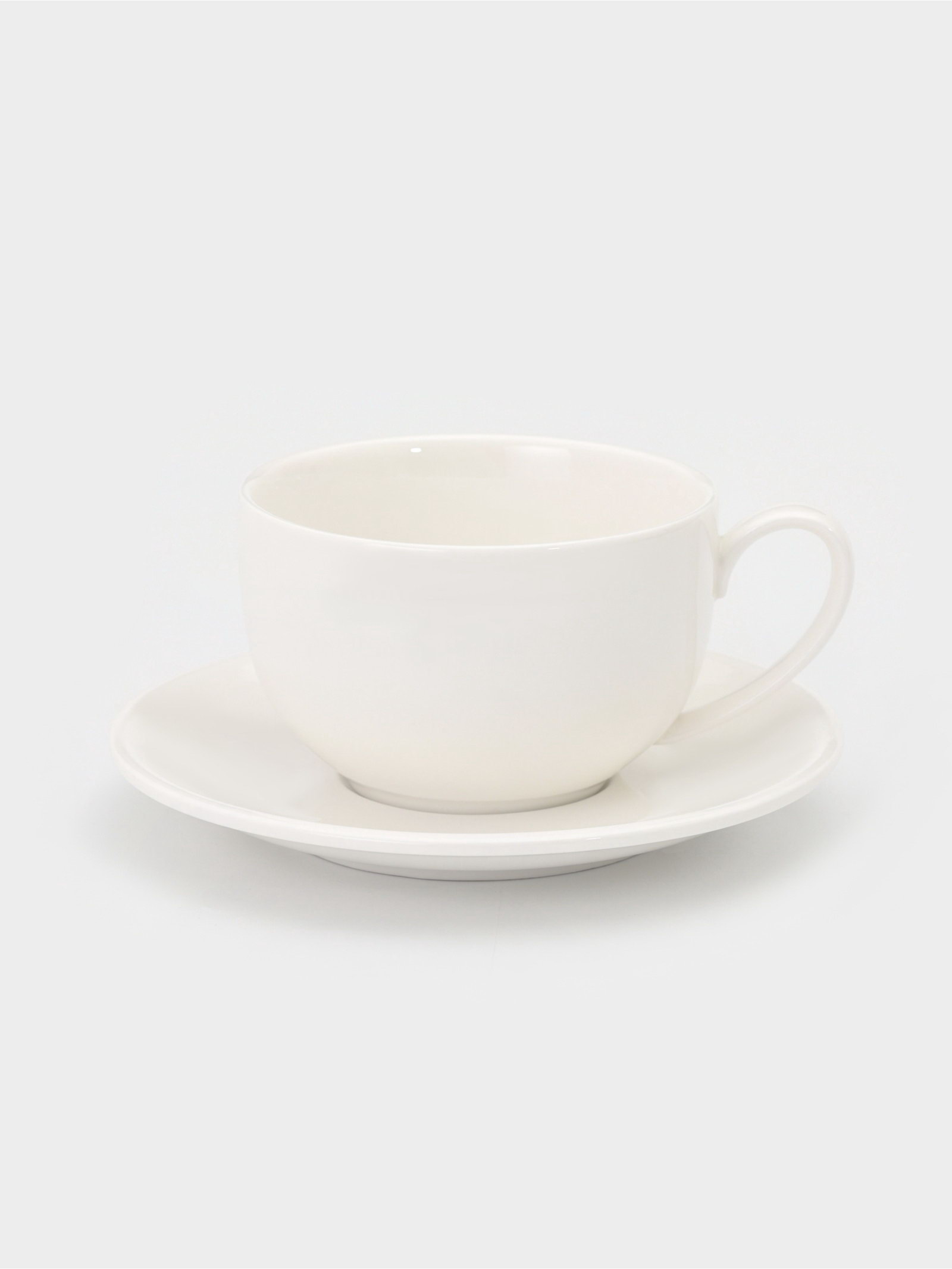 Просторная форма Увеличенный объём чашки подходит для большой порции чая, кофе или какао. Широкая форма сохраняет температуру напитка, а блюдце защищает стол от случайных капель. Фарфор не впитывает запахи и красители посуда остаётся белоснежной даже после контакта с крепким чаем или ягодными морсами. Компактный набор удобно хранить на открытой полке или в кухонном шкафу. | ||