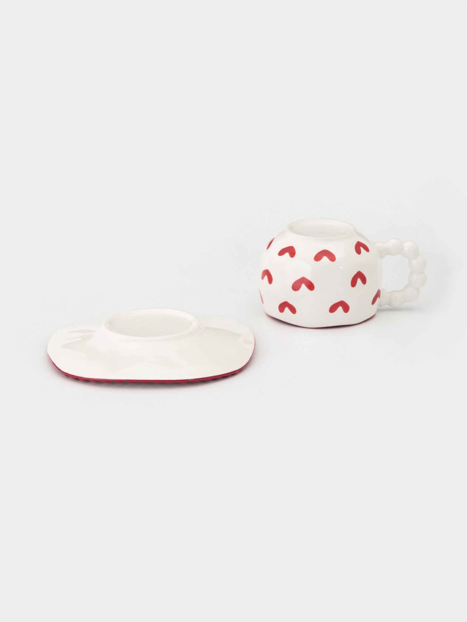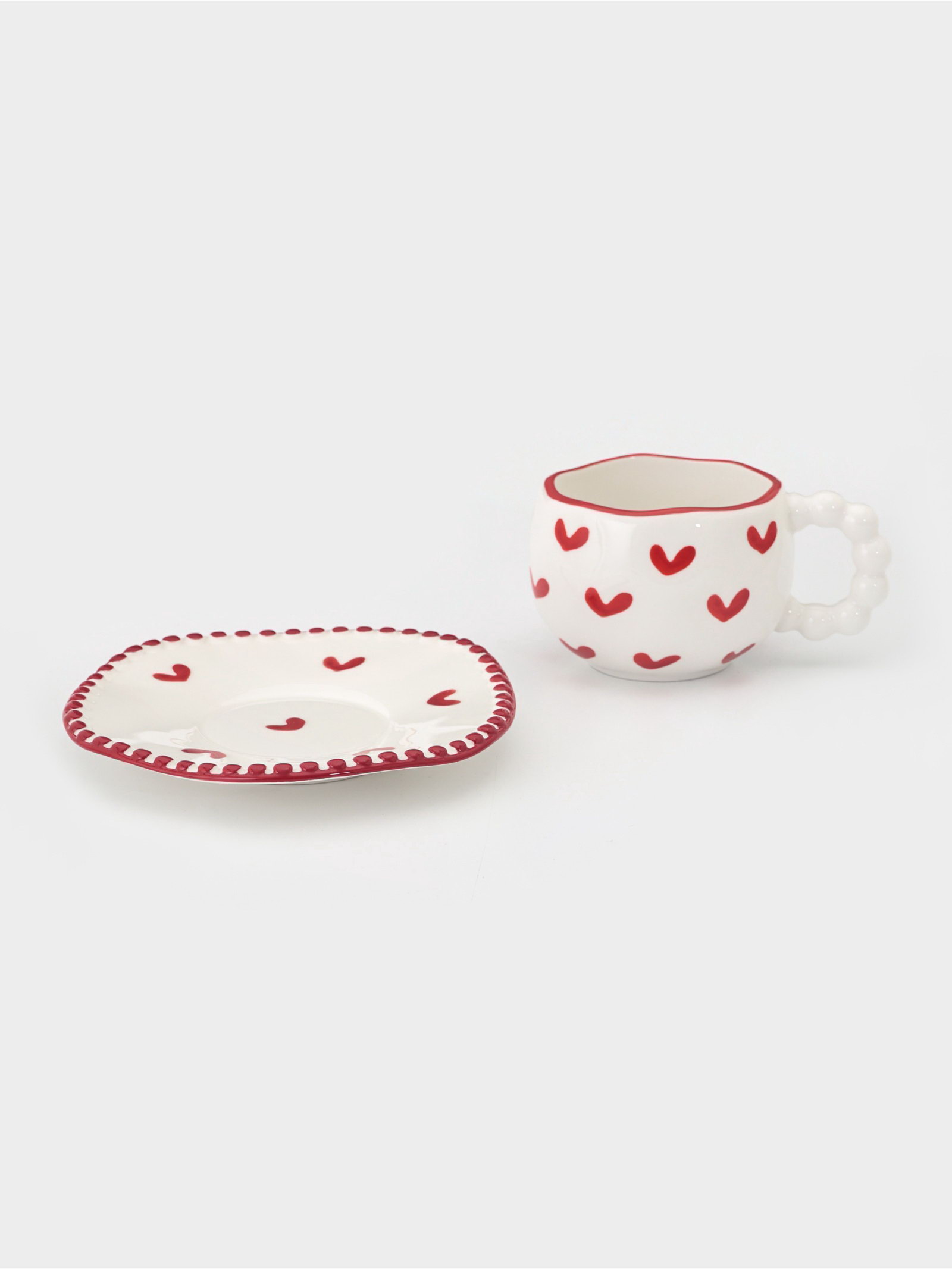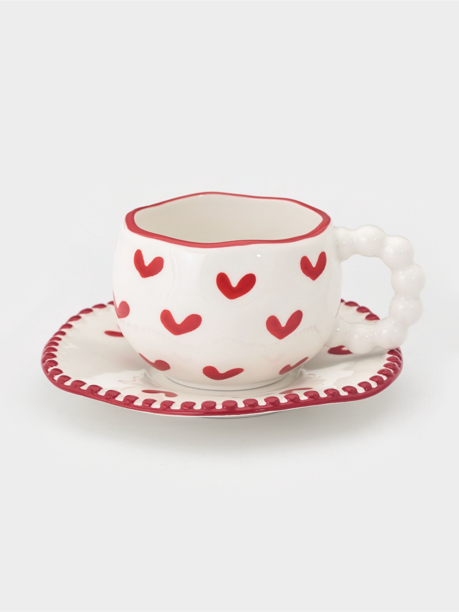Чайная пара "Сердца", 2 предмета: блюдце 16x1.5 см, чашка 13x10x7 см, белая, 1x1x1 см., Китай