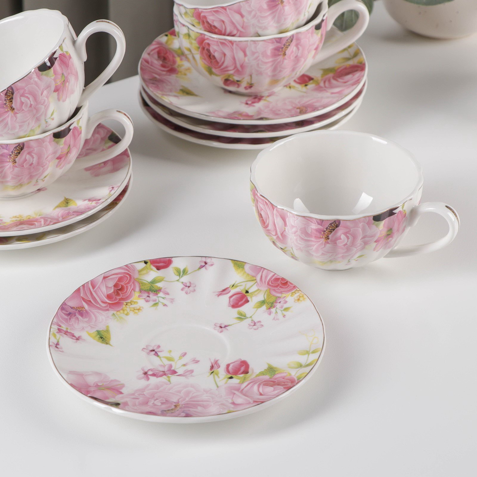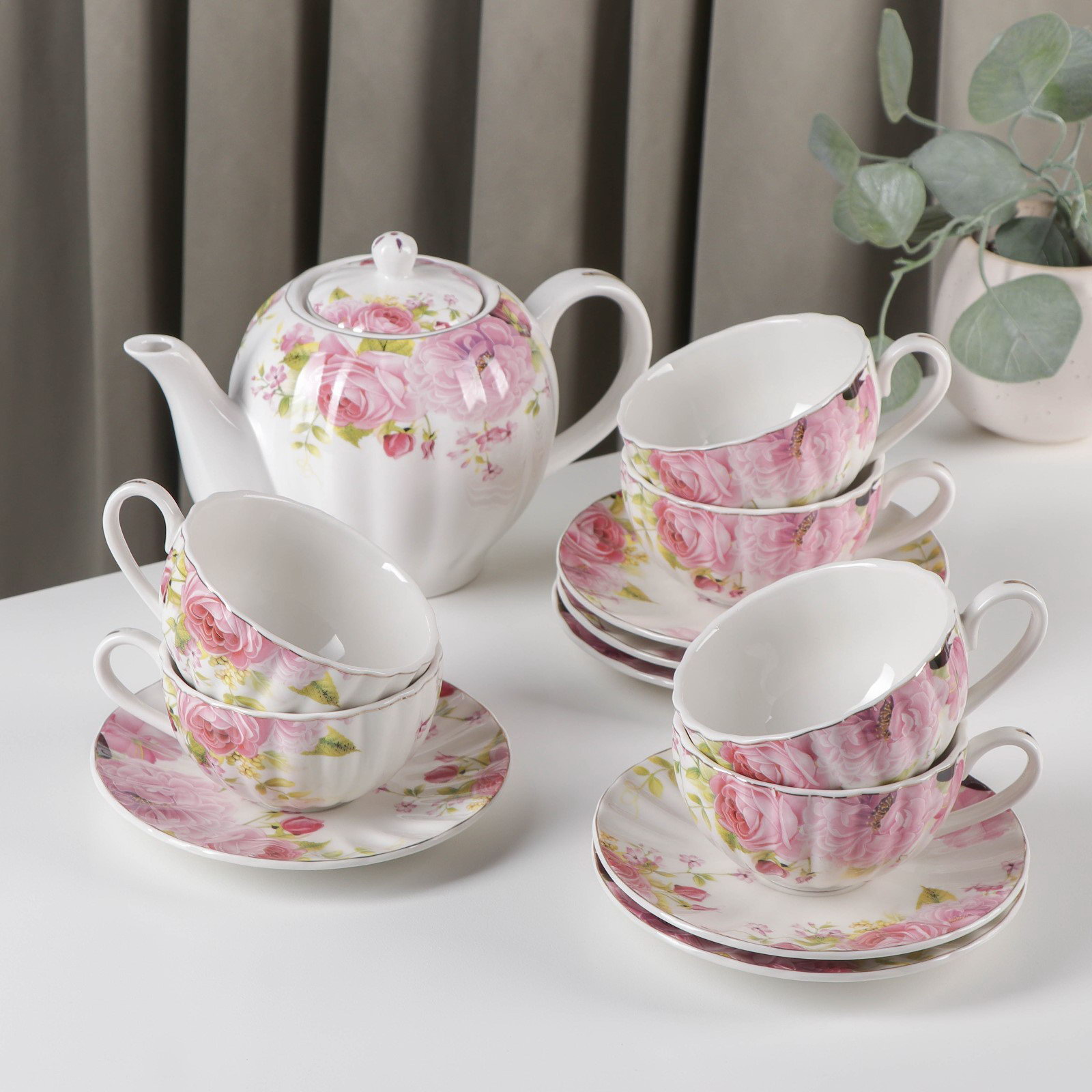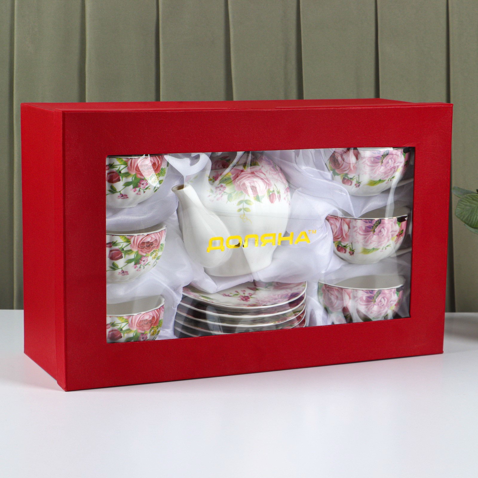 Сервиз фарфоровый чайный "Вдохновение", 13 предметов: 6 чашек 250 мл, 6 блюдец, чайник 700 мл, 26x41.5x15 см., Доляна, Китай
