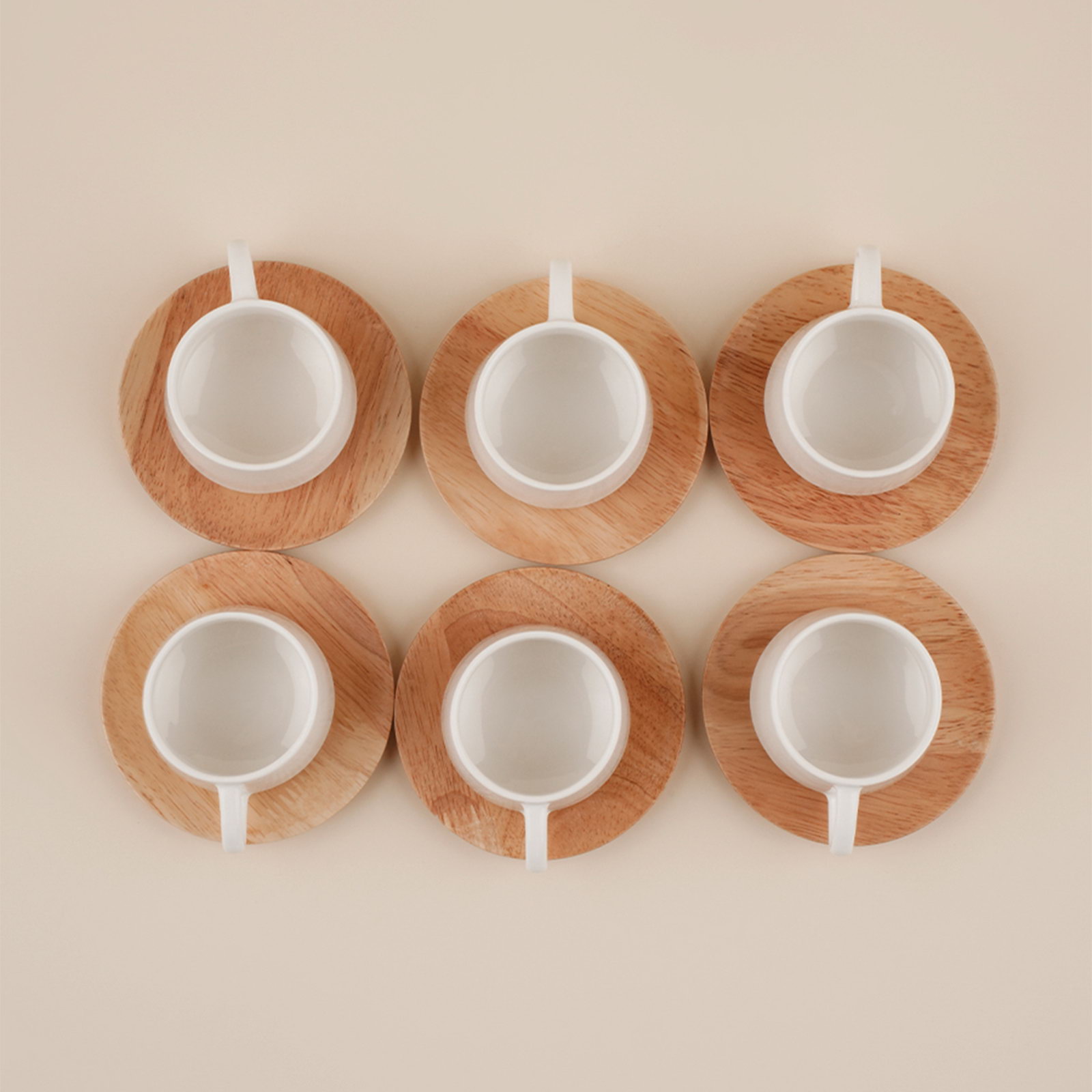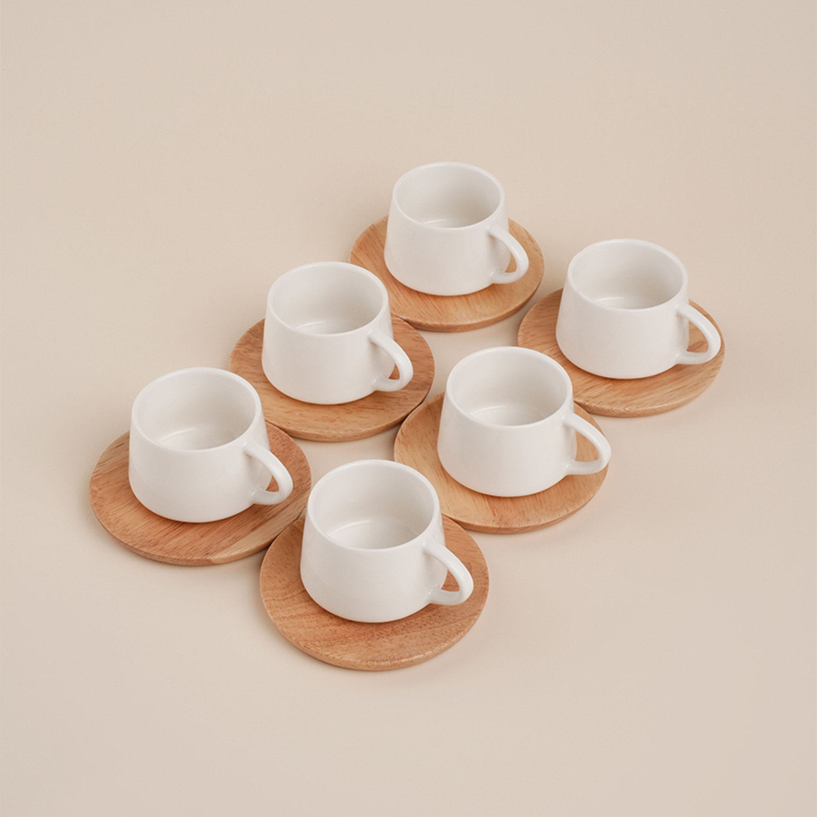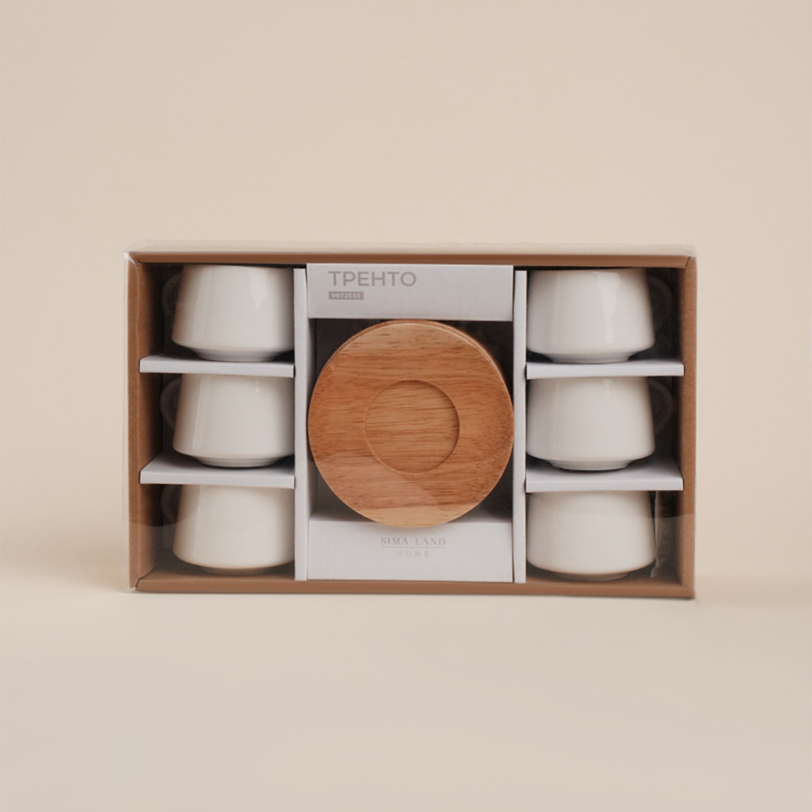 Сервиз чайный фарфоровый SL Home "Тренто", 12 предметов: 6 чашек 90 мл, 6 деревянных подставок, 10x10x5.2 см., Sima-Land Home, Китай