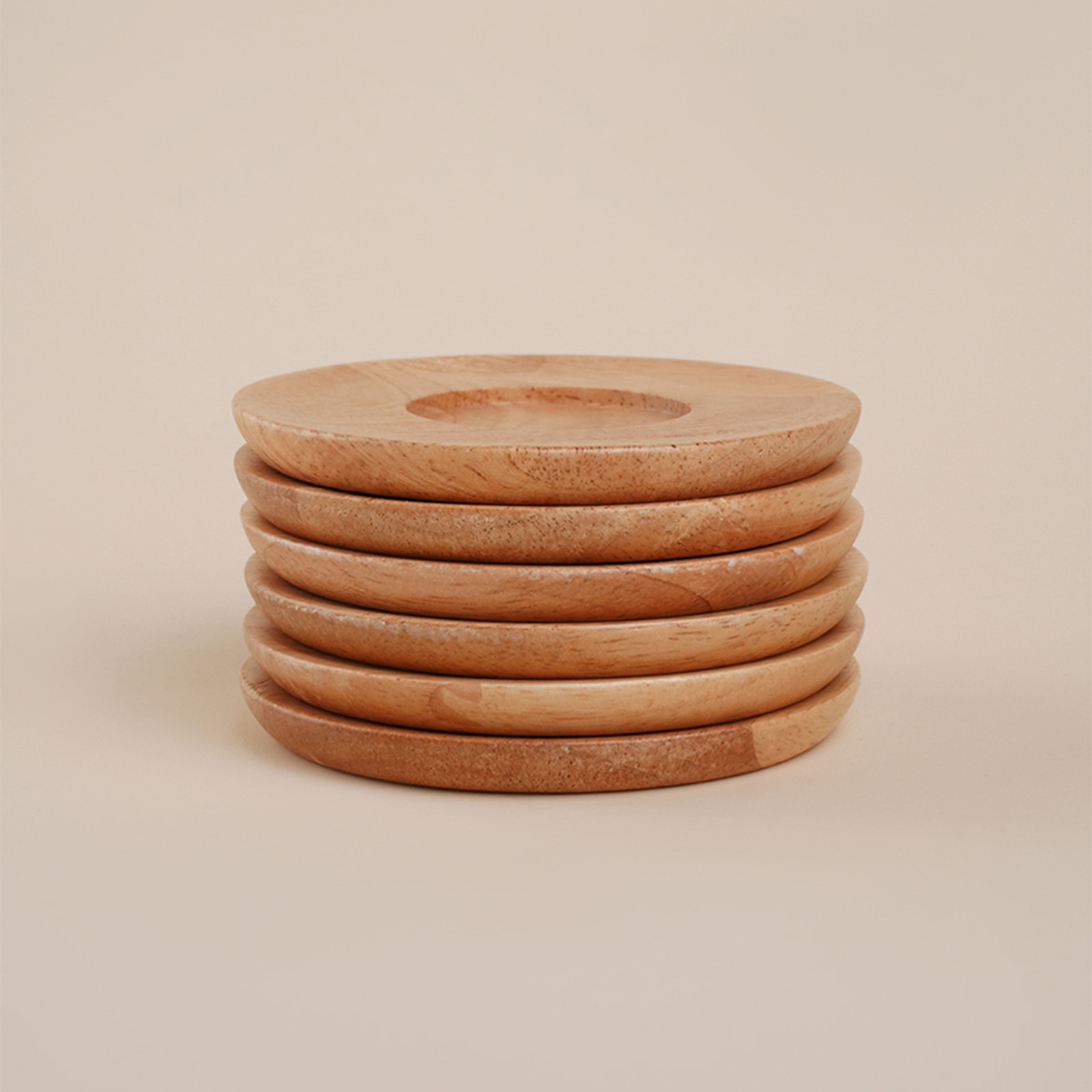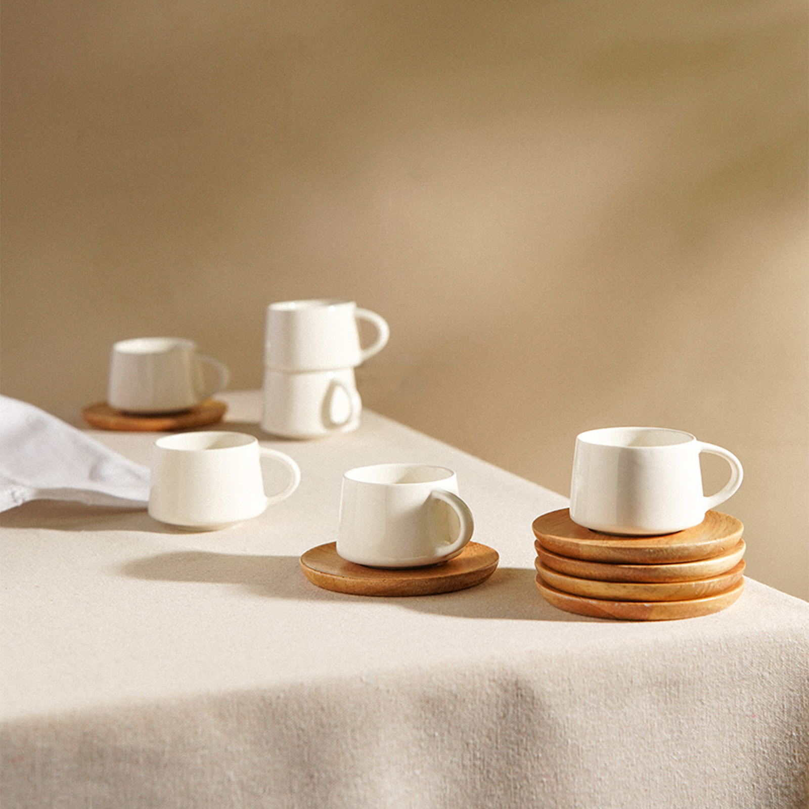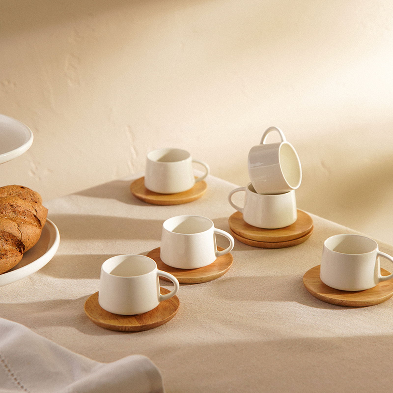 Сервиз чайный фарфоровый SL Home "Тренто", 12 предметов: 6 чашек 90 мл, 6 деревянных подставок, 10x10x5.2 см., Sima-Land Home, Китай