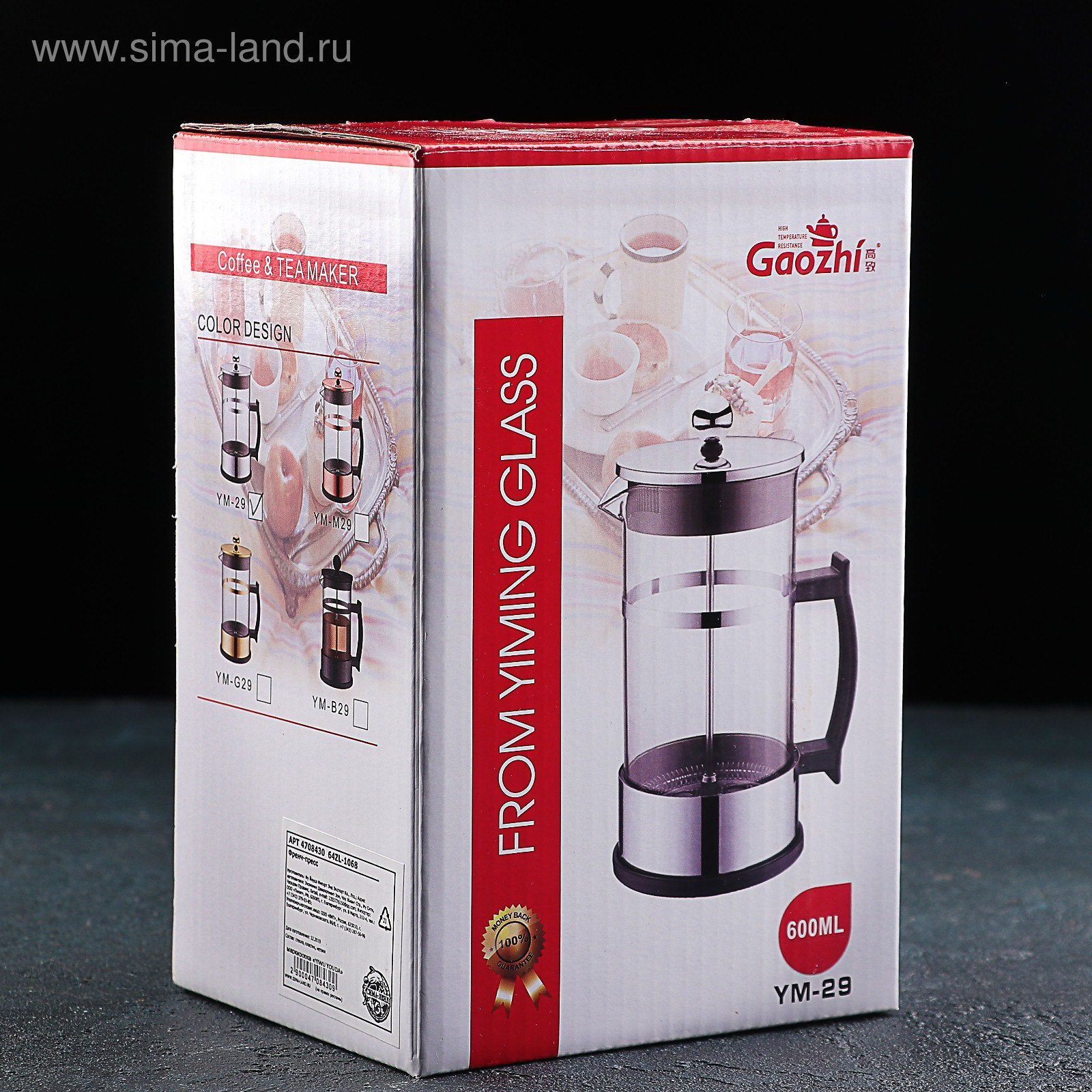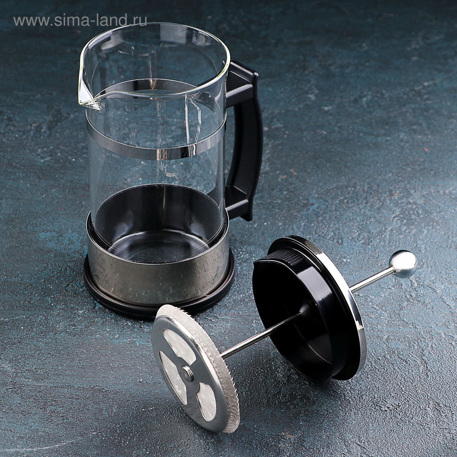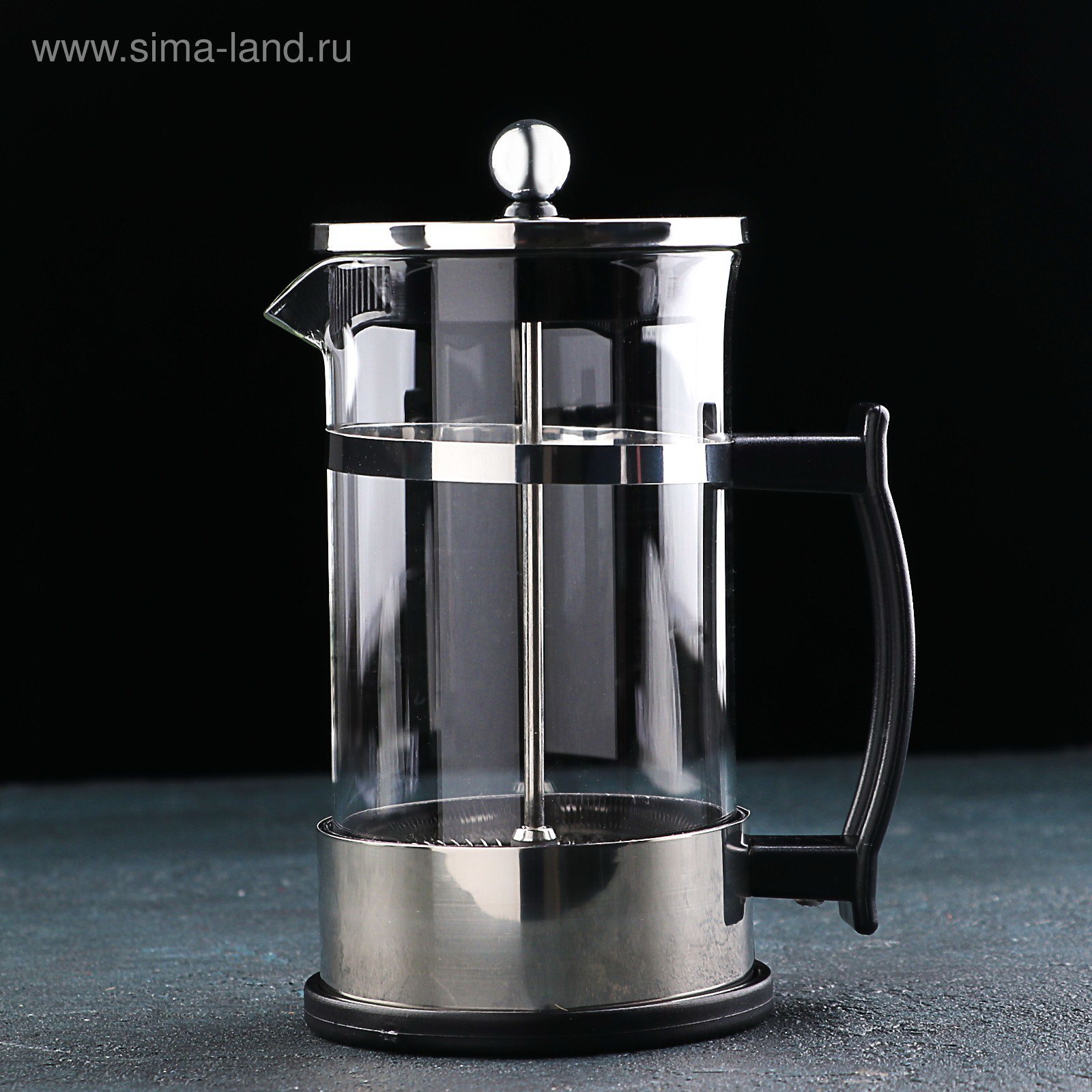 Чайник заварочный френч - пресс "Классика", 600 мл, стекло, цвет серебряный, 10x15x19.5 см., Китай