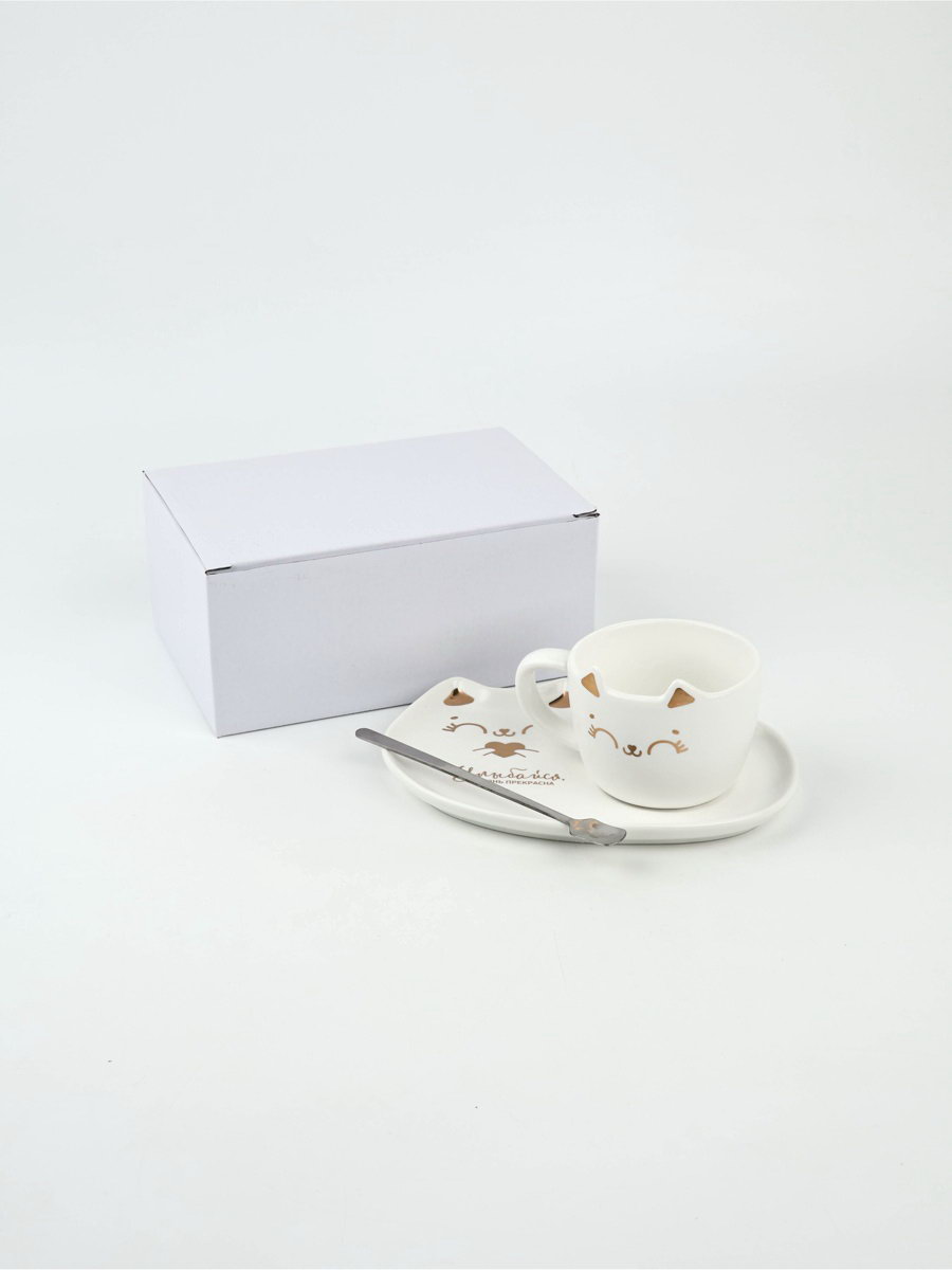 Чайная пара "Улыбайся": кружка 200 мл, блюдце 18x11 см, ложка, 14x19.5x8.5 см., Дорого внимание, Китай