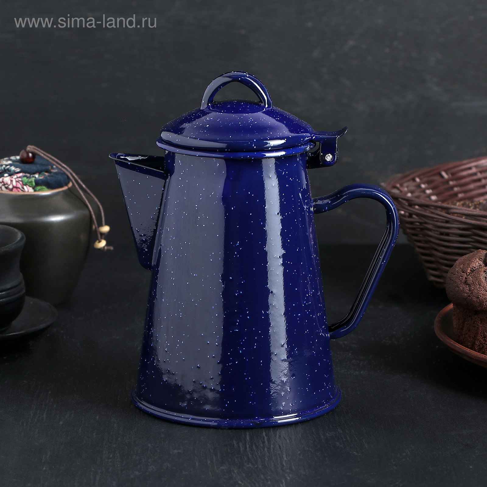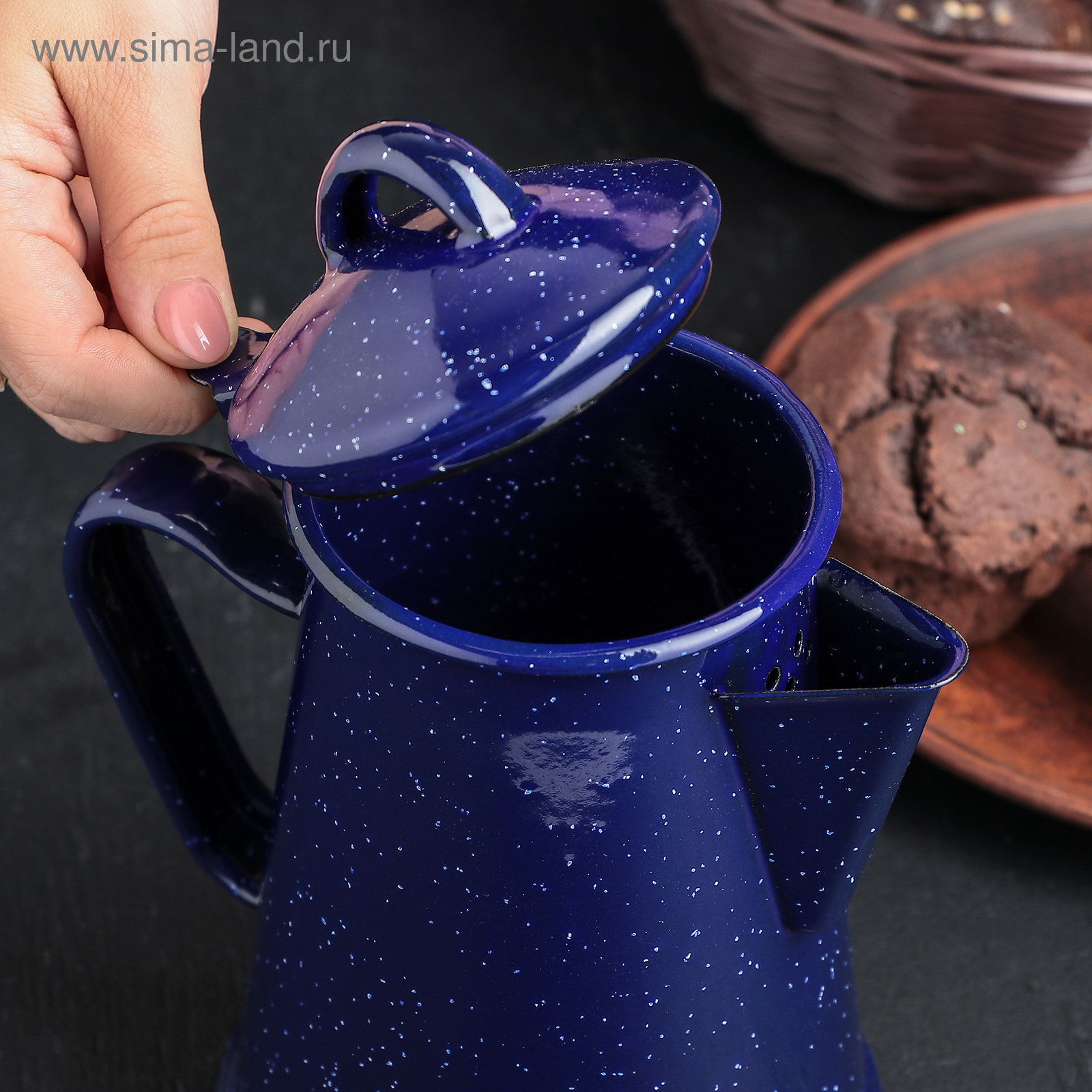 Кофейник эмалированный "Синий мрамор", 800 мл, 14x11.5x18 см, цвет синий, 11.5x14x18 см., Китай