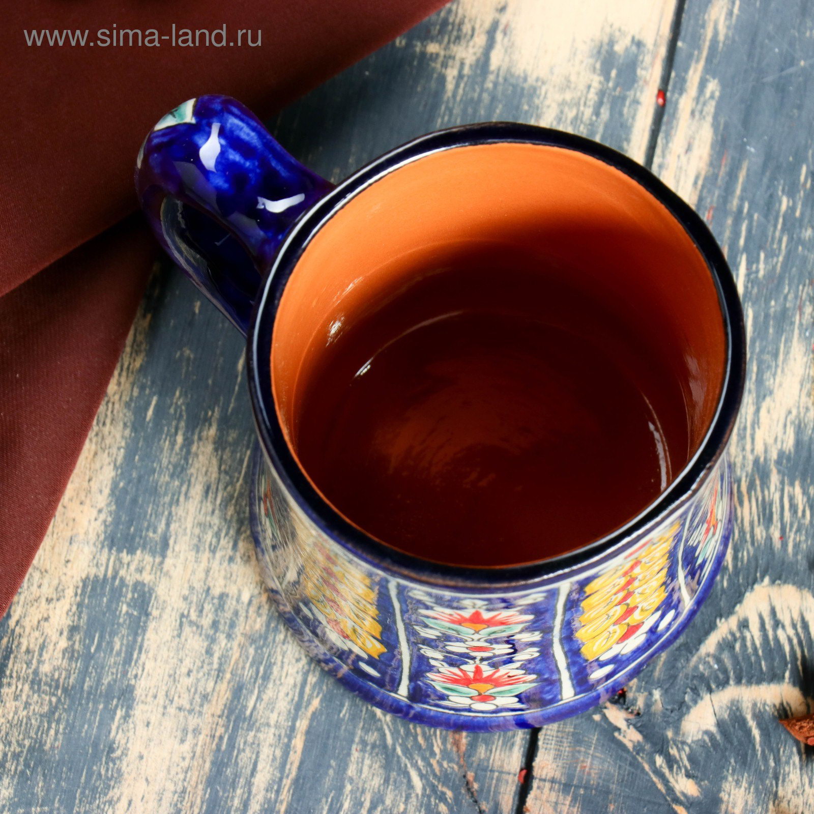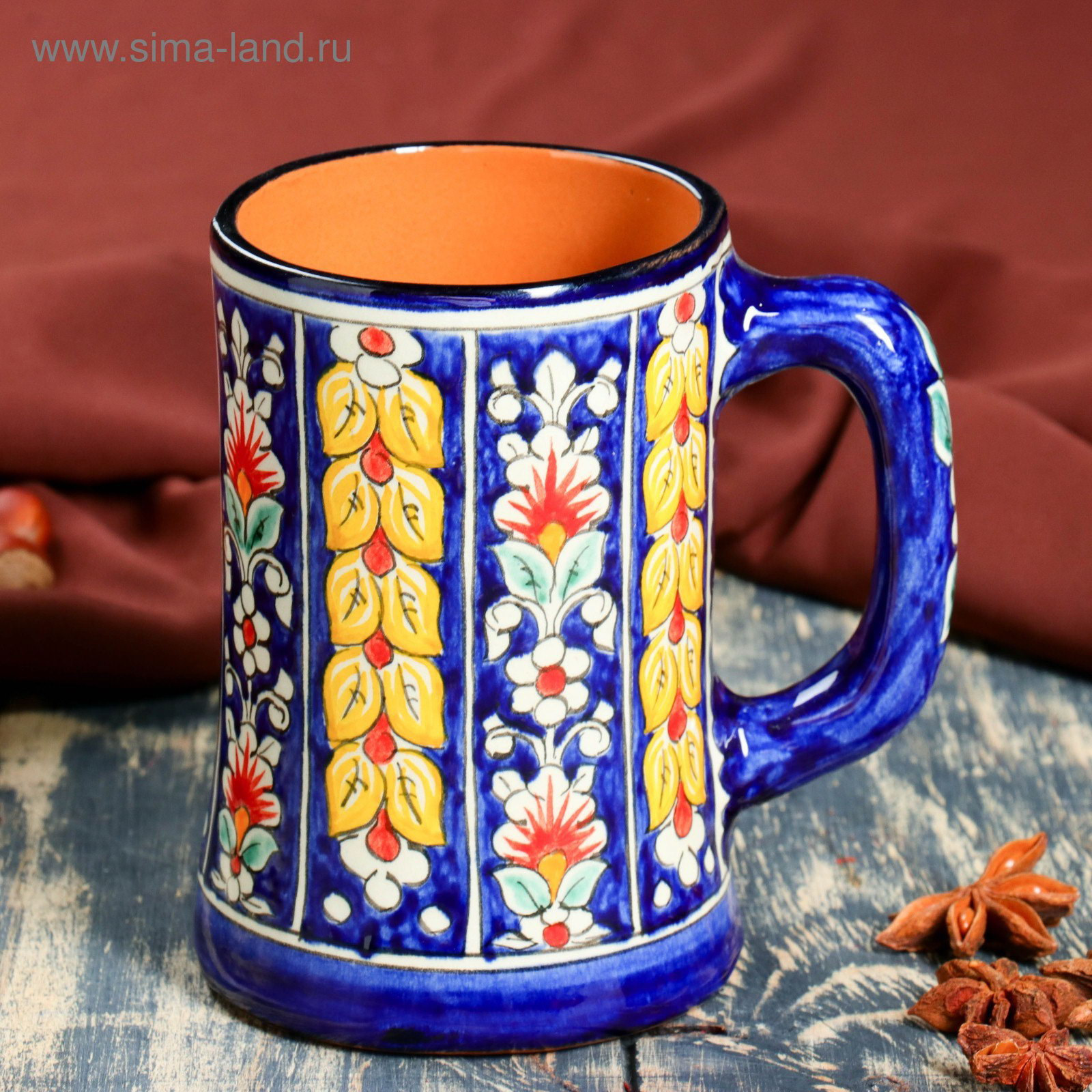 Кружка узбекская Риштанская Керамика "Цветы", 500 мл, синий, 500 мл., Шафран, Узбекистан