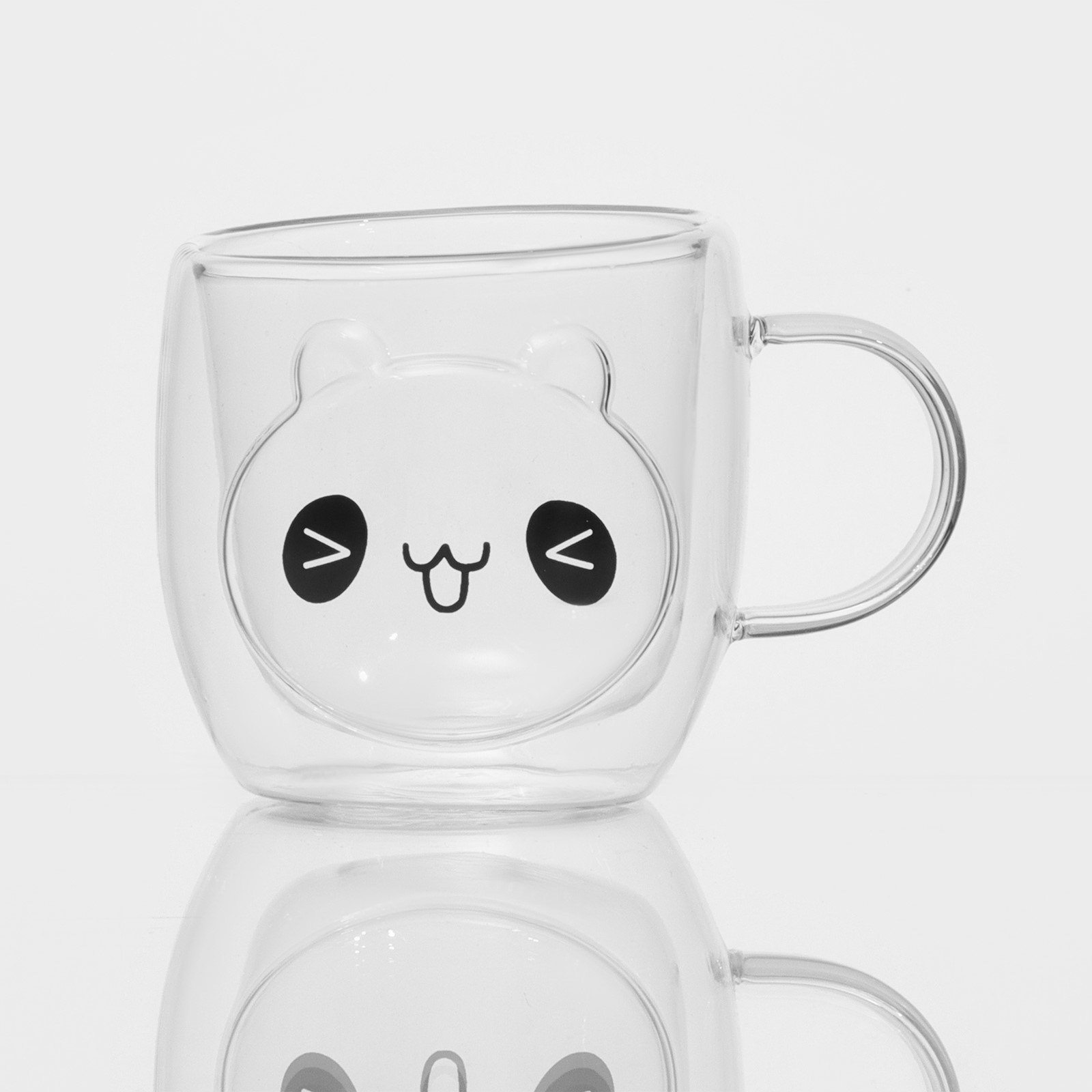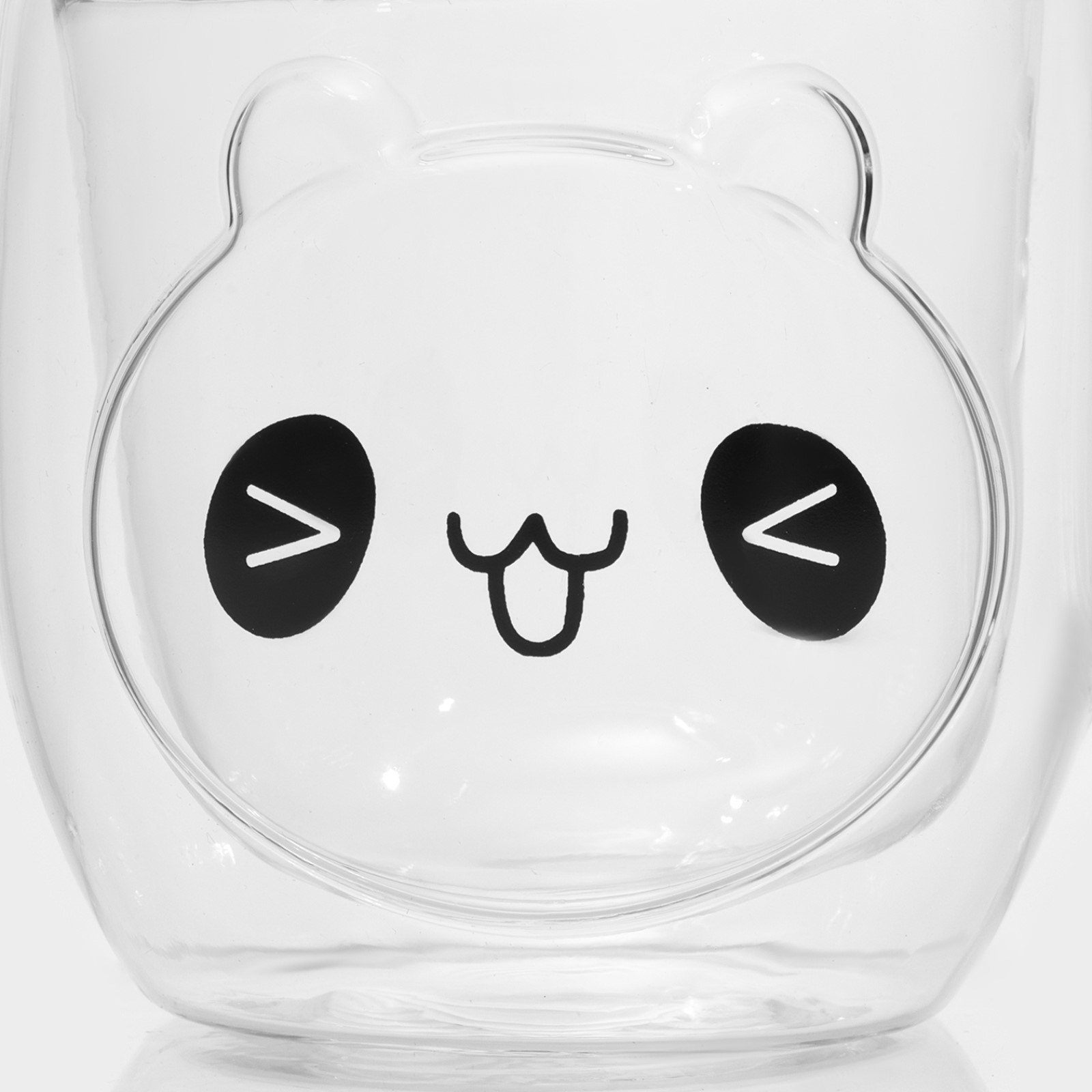 Кружка с двойными стенками "Панда", 300 мл, стекло, прозрачная, 9.5x13x8.5 см., Китай
