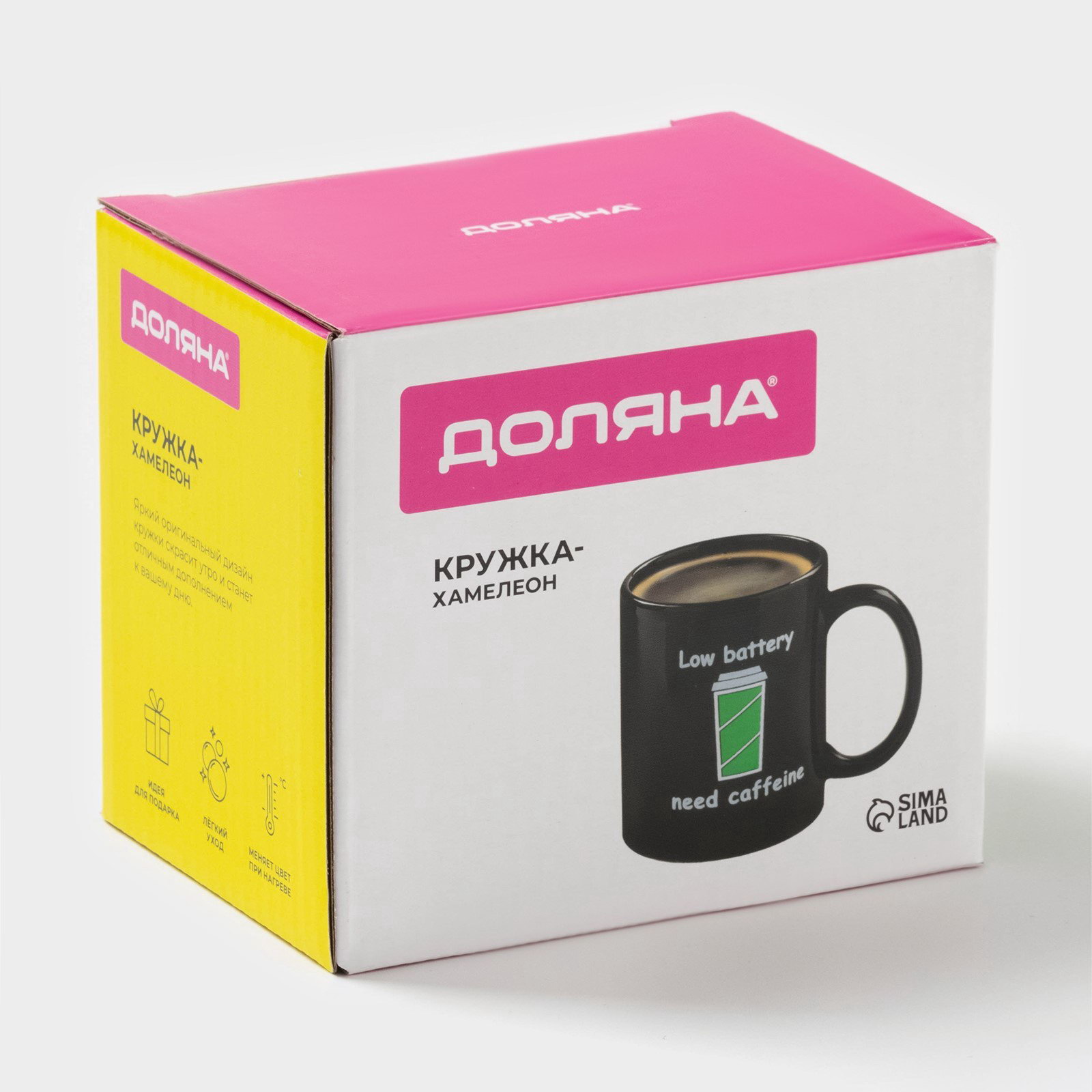 Размер упаковки: 8.5 x 10.5 x 11.5 см. Набор: Нет Высота, см: 9.5 Индивидуальная упаковка: Да tnved: 6912002600 Можно мыть в посудомоечной машине: Нет Можно использовать в СВЧ-печи: Нет Рисунок: Да Цвет: Чёрный Тематика: Приколы Дополнительный аксессуар: Без аксессуаров Особенности: Хамелеон Текстура: Гладкая Запрет реализации по сегментам: 00000000485 Матовая поверхность: Нет Кружка-хамелеон не просто приспособление для питья. Это настоящее украшение дома и яркий аксессуар! Налейте горячего чаю, кофе или какао, и кружка сразу поменяет цвет. Вашу оригинальность по достоинству оценят гости, а сам сосуд освежит любой интерьер благодаря смелому дизайну. Создатели не забыли и о практичности: