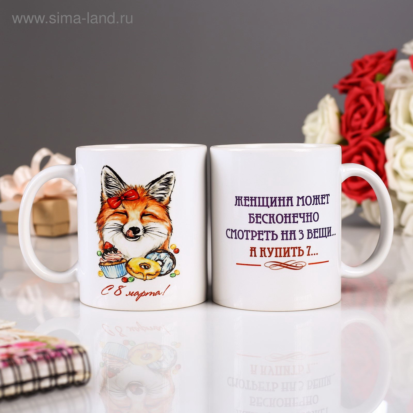 Кружка сублимация "С 8 Марта! Лисичка", с нанесением, 320 мл., Дарим Красиво, Китай