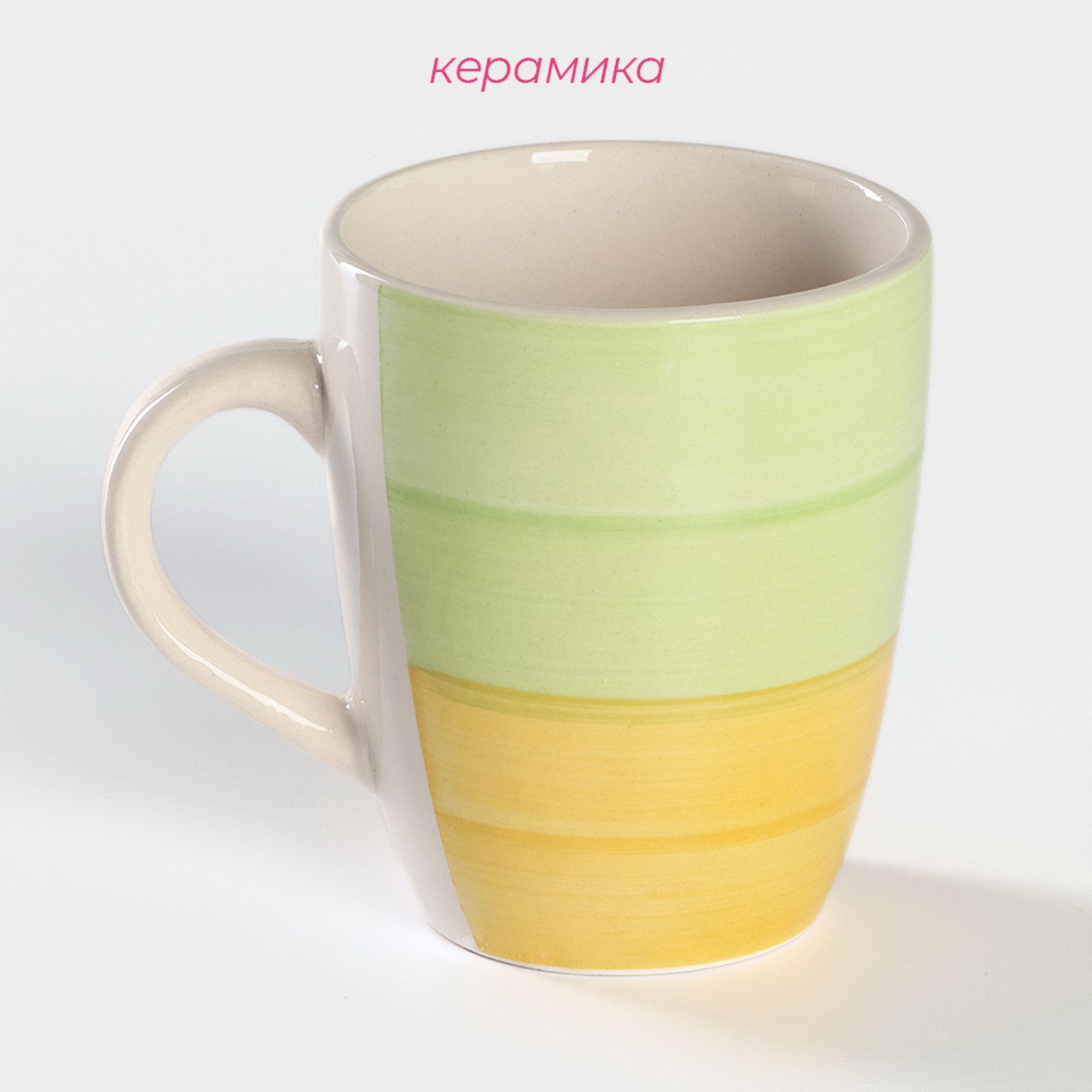 Кружка керамическая "Подсолнух", 360 мл, цвет зелёный, 8.5x12x10.5 см., Доляна, Китай