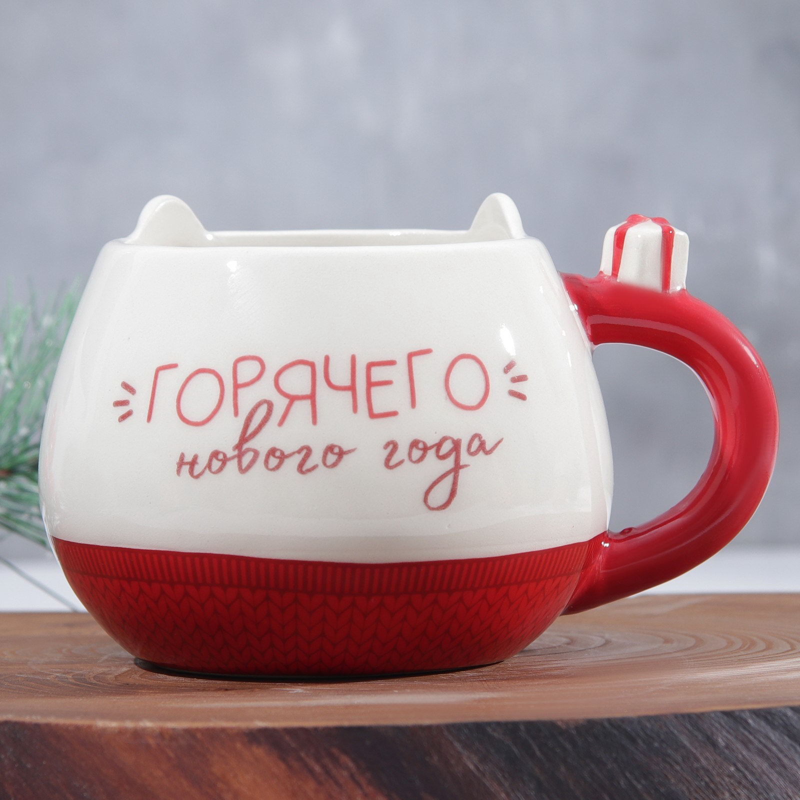 Кружка керамическая новогодняя "Горячего Нового года", 400 мл, ручная работа, 10.5x14x9.7 см., Дорого внимание, Китай