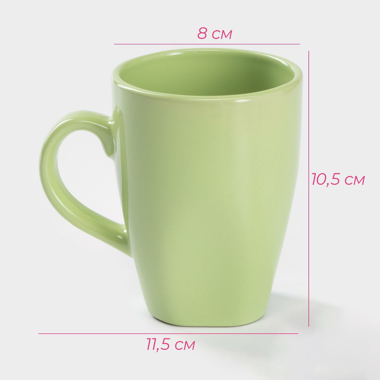 Кружка керамическая "Пастель", 280 мл, цвет зелёный, 8x11.5x10.5 см., Доляна, Китай