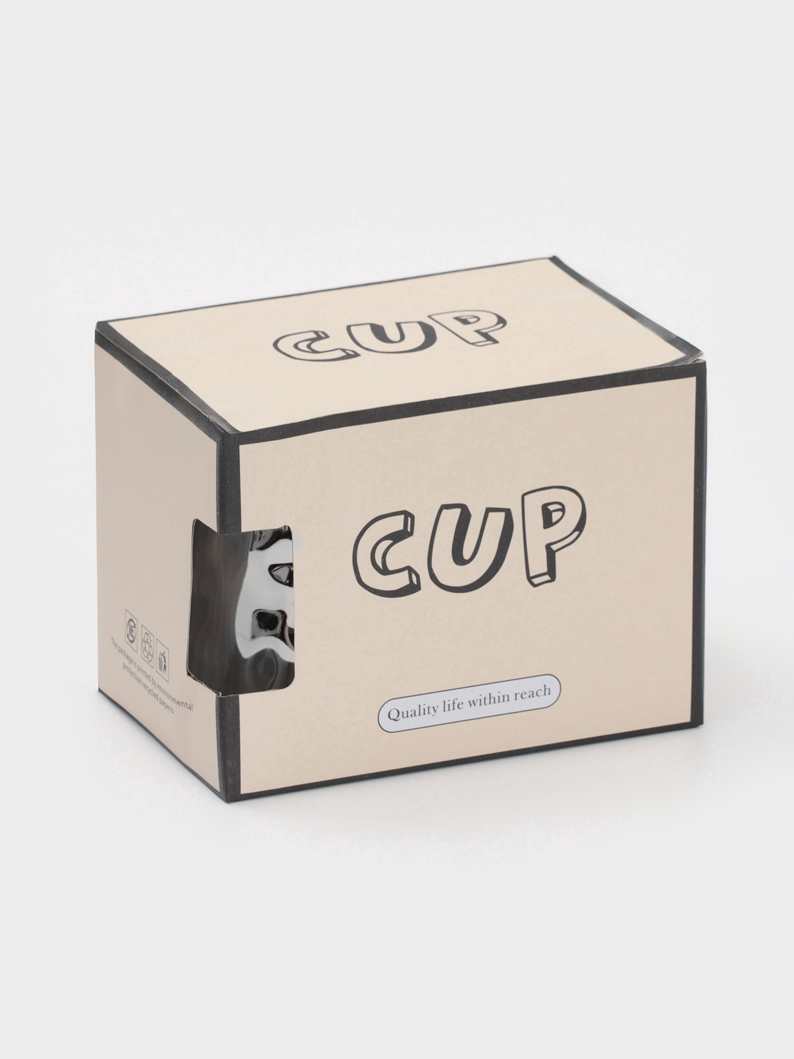 Кружка с ложкой "Стильный мишка", 320 мл, керамика, серебристая, 9x14x8.2 см., Китай