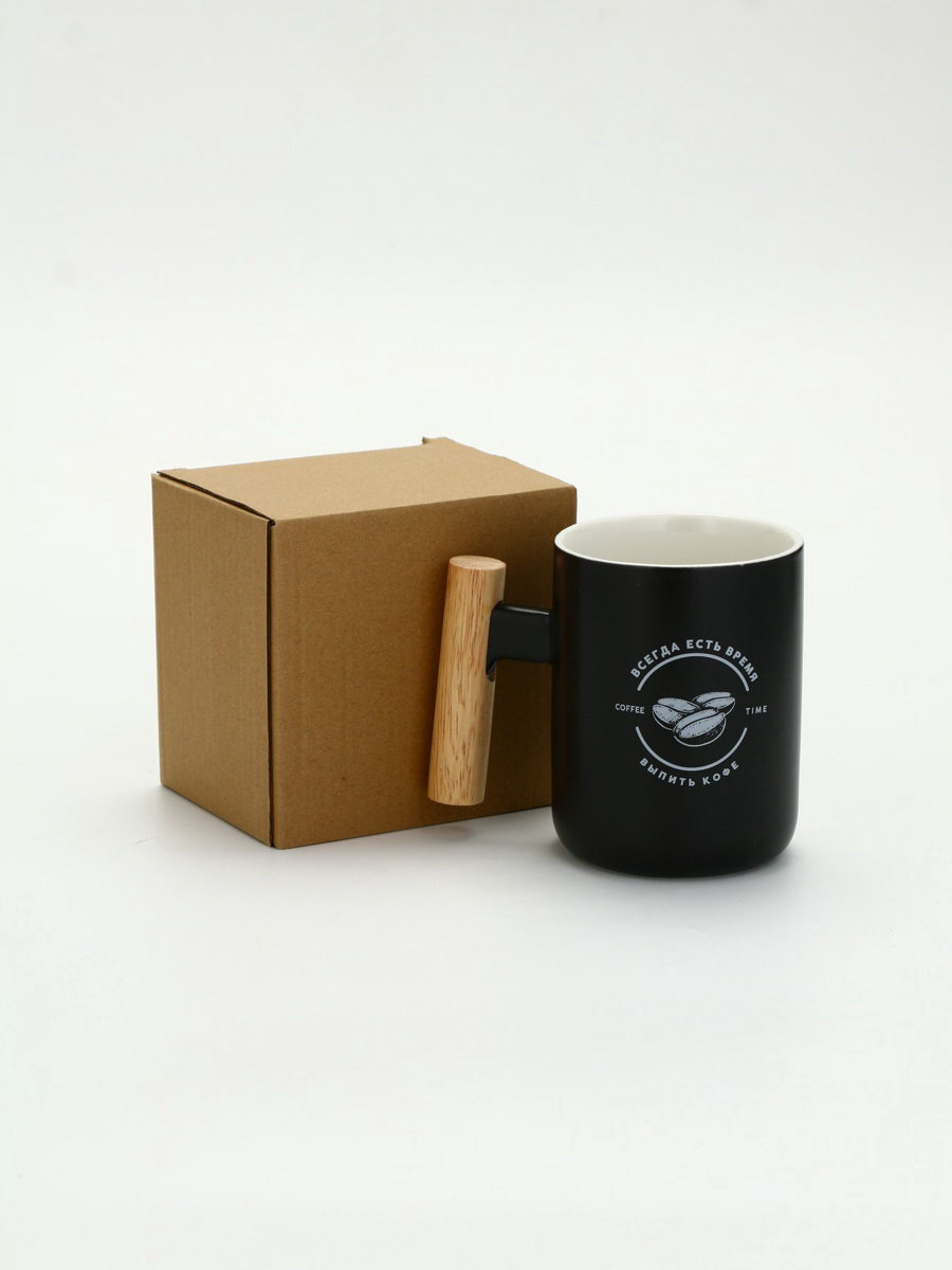 Кружка керамическая "Всегда есть время", 400 мл, деревянная ручка, 7.9x7.9x10.3 см., Дорого внимание, Китай