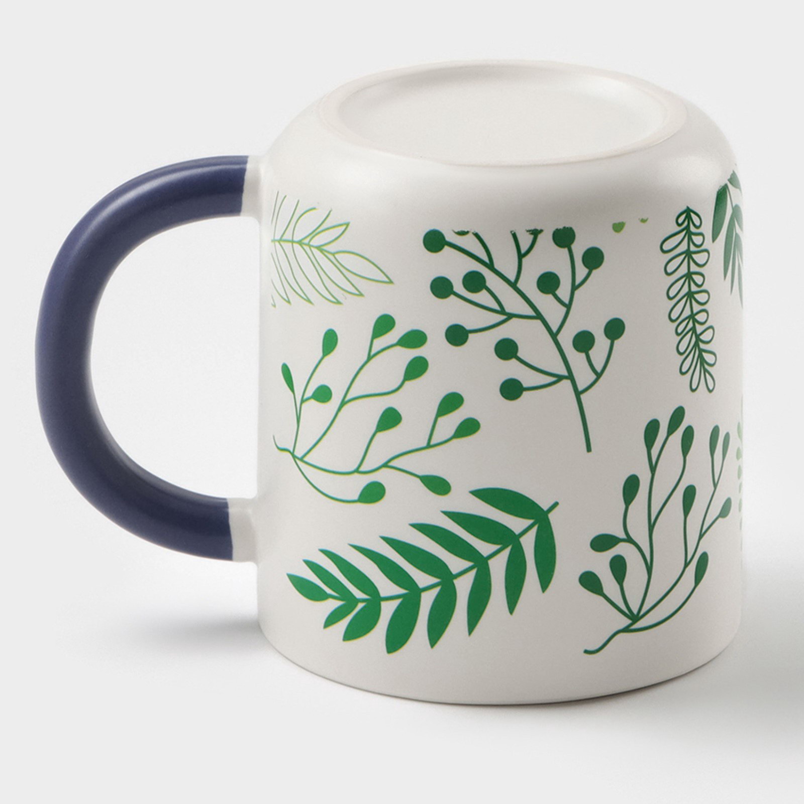 Кружка с ложкой "Гербарий", 350 мл, керамика, белая, 8.5x12x9.8 см., Китай