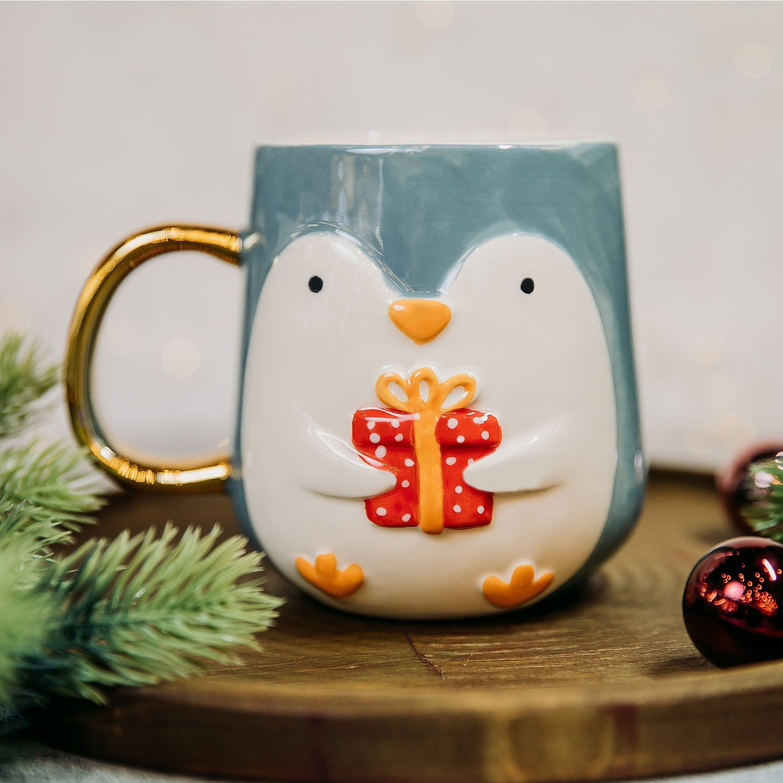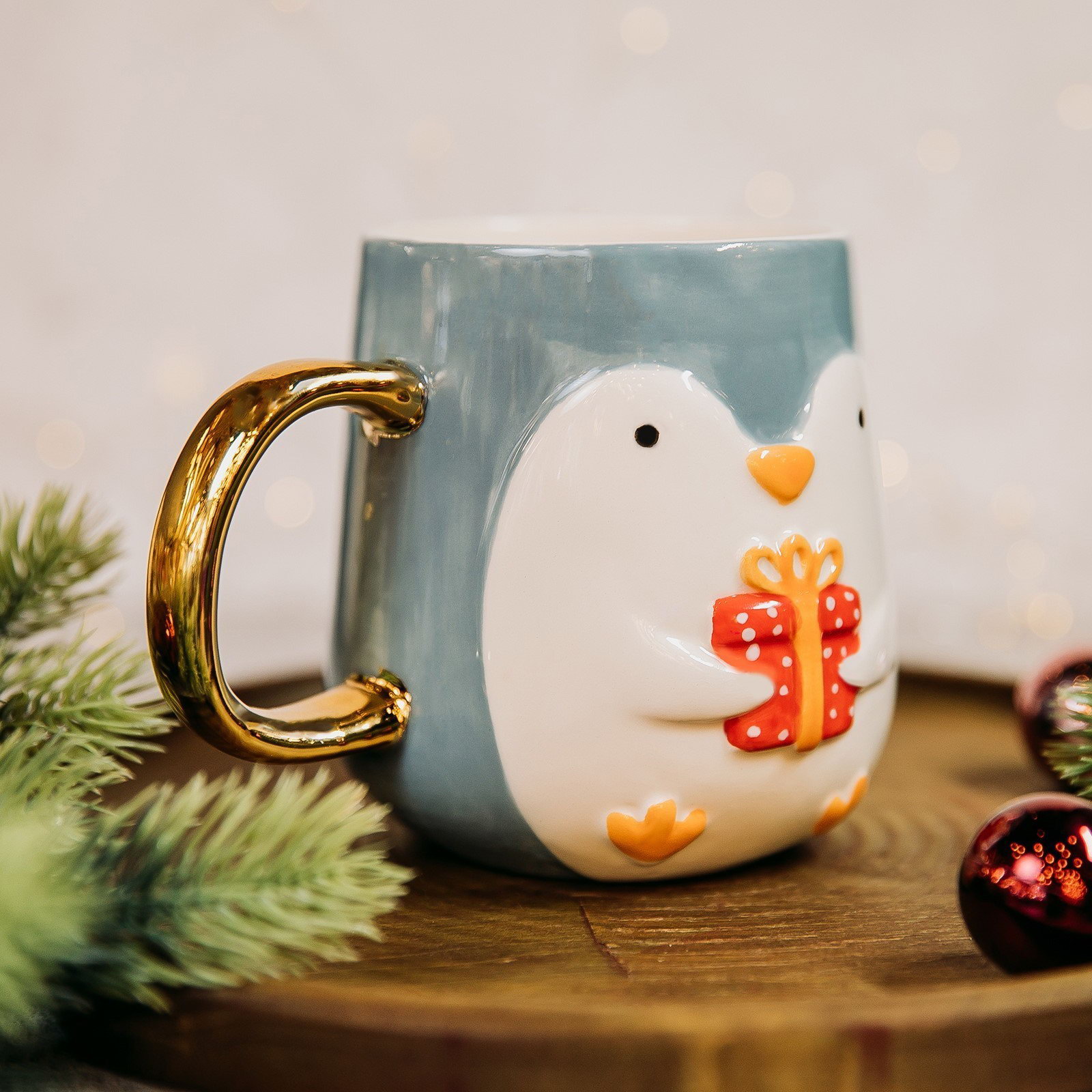 Кружка керамическая новогодняя "Пингвин", 600 мл, ручная работа, 13x10.5x8.5 см., Дорого внимание, Китай