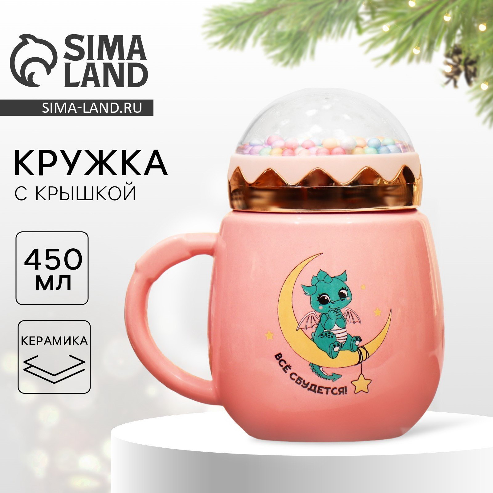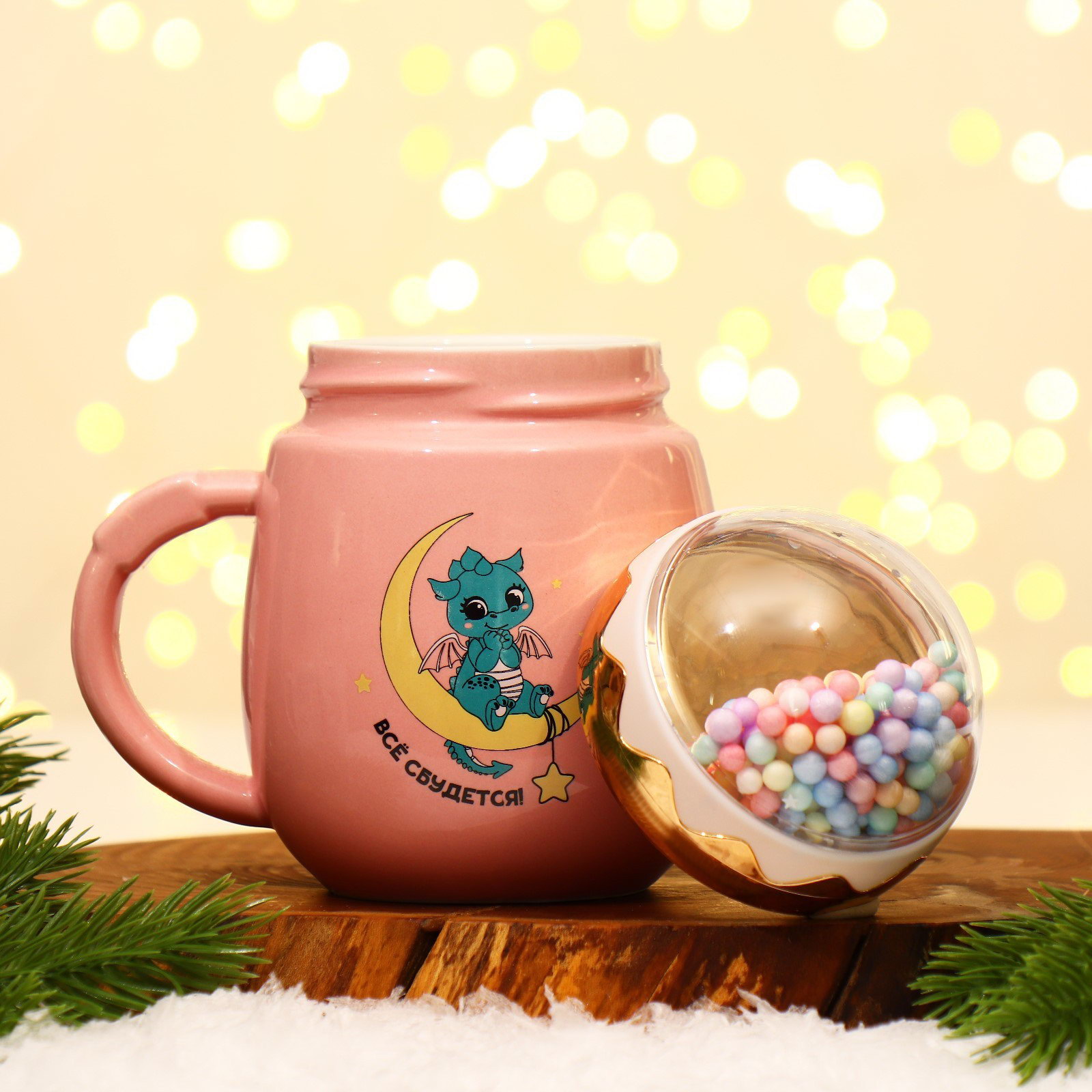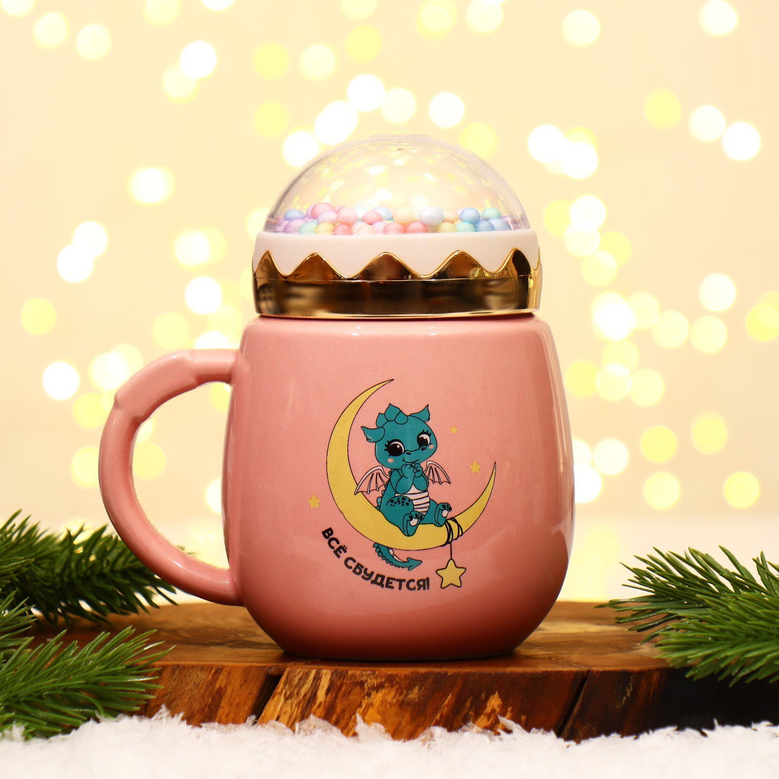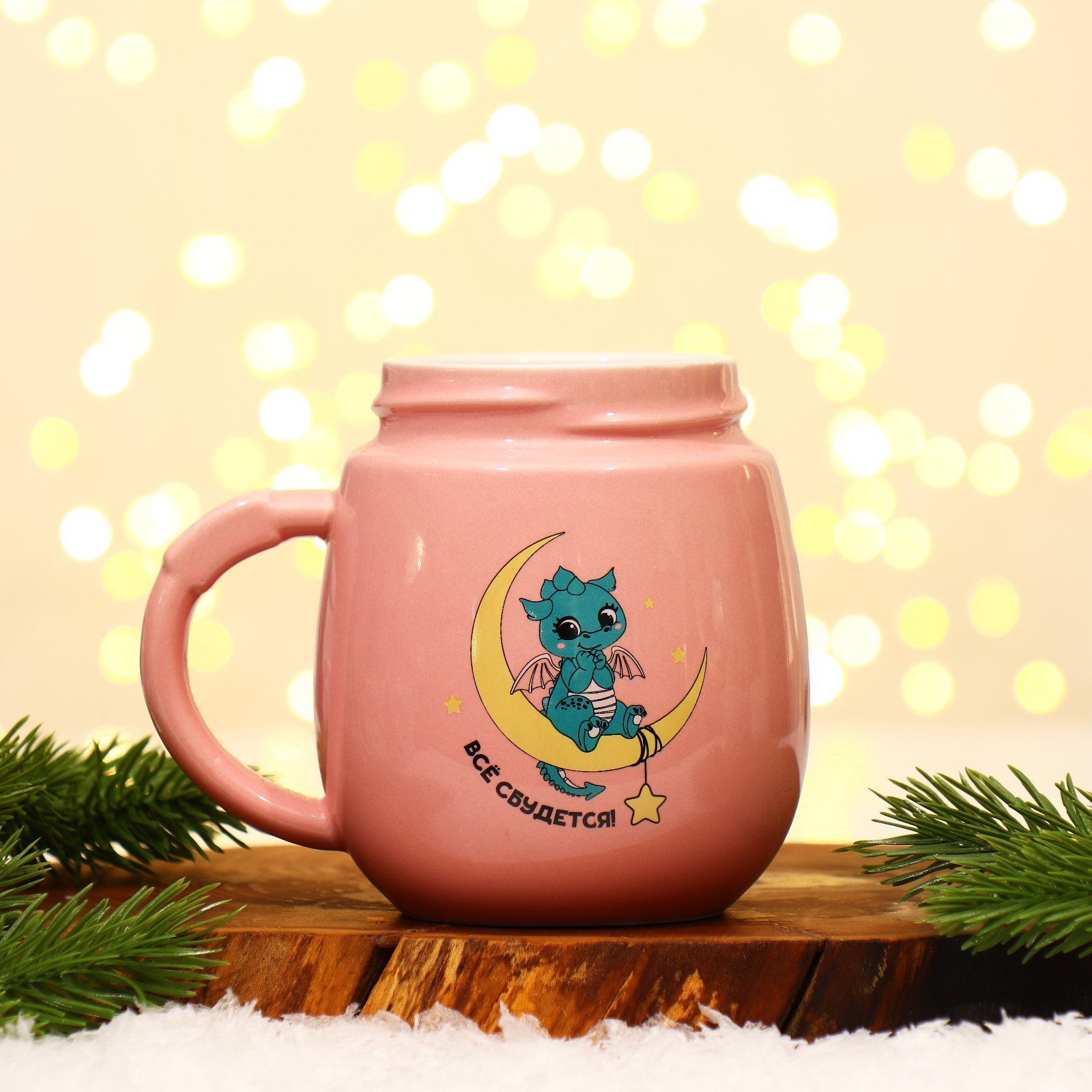 Новый год. Кружка керамическая "Все сбудется", 450 мл, цвет розовый, 6.6x14x9 см., Дорого внимание, Китай