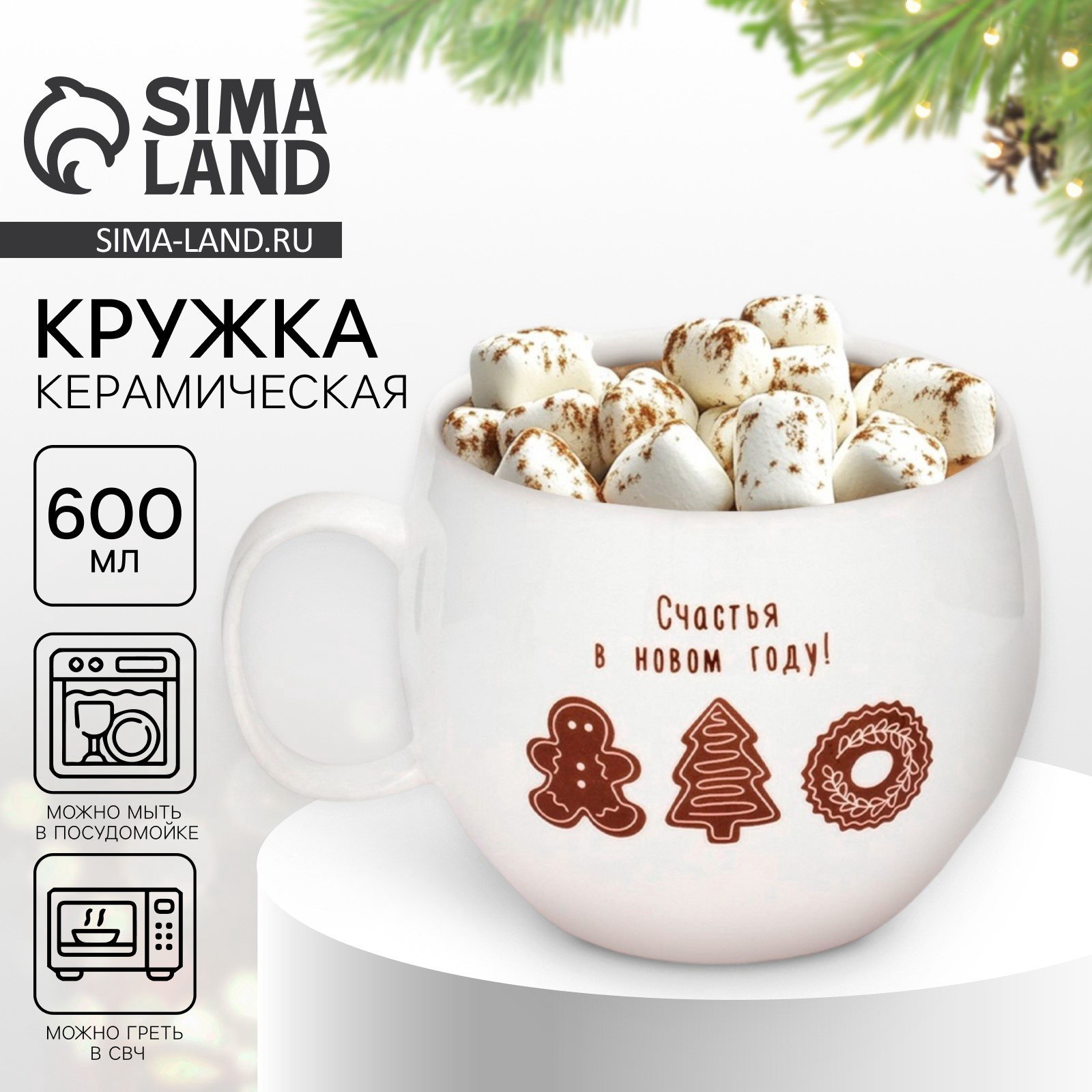 Кружка керамическая новогодняя "Счастья в новом году!", 600 мл, 10.5x14x6.5 см., Дорого внимание, Китай