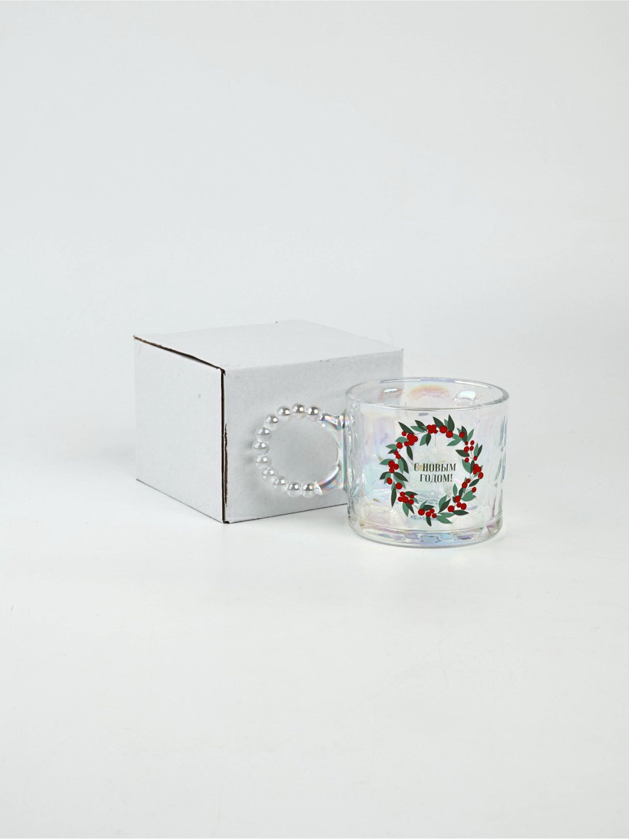 Кружка новогодняя стеклянная "С Новым годом!", 300 мл, голография, 13.5x8.7x7.5 см., Дорого внимание, Китай