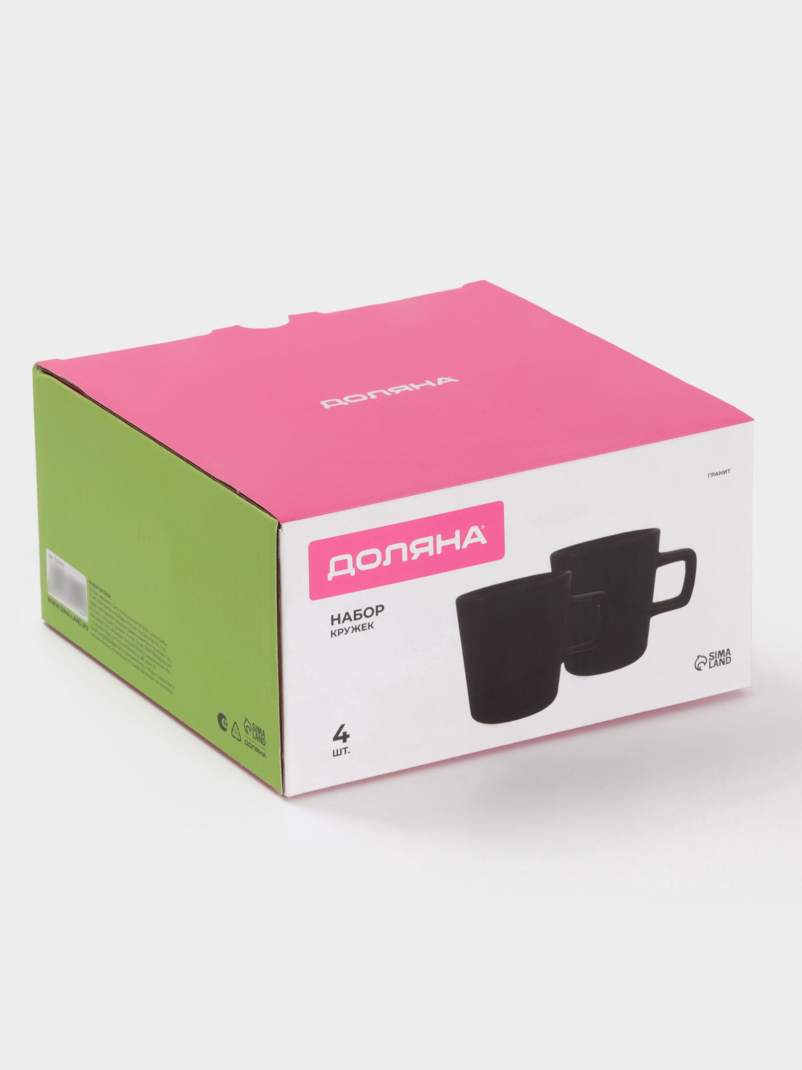 Набор кружек "Гранит", 4 шт., 340 мл, керамика, чёрный, 9x13x9 см., Доляна, Китай