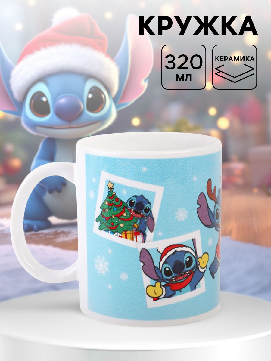 Кружка новогодняя сублимация 320 мл, Стич, 320 мл., Disney, Китай