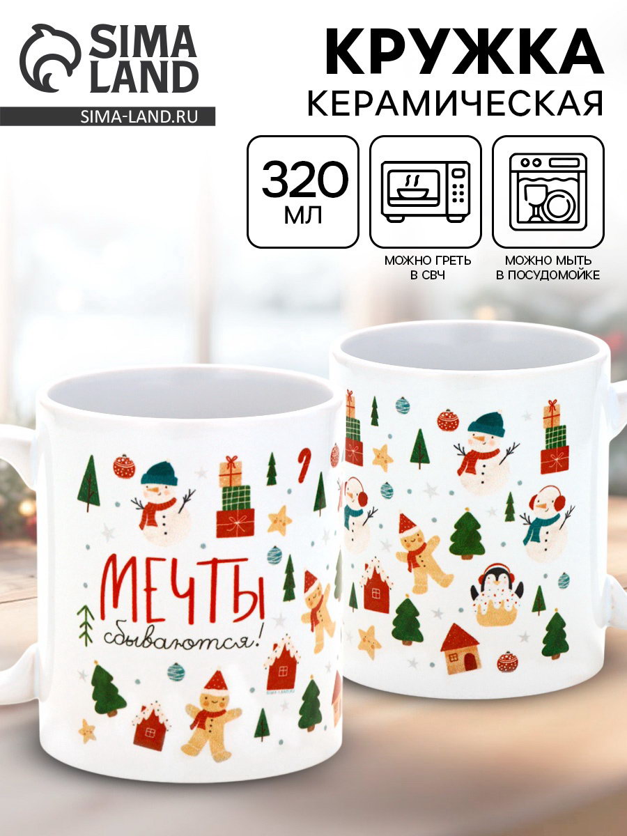 Кружка новогодняя керамическая "Мечты сбываются", 320 мл, 320 мл., Дорого внимание, Китай