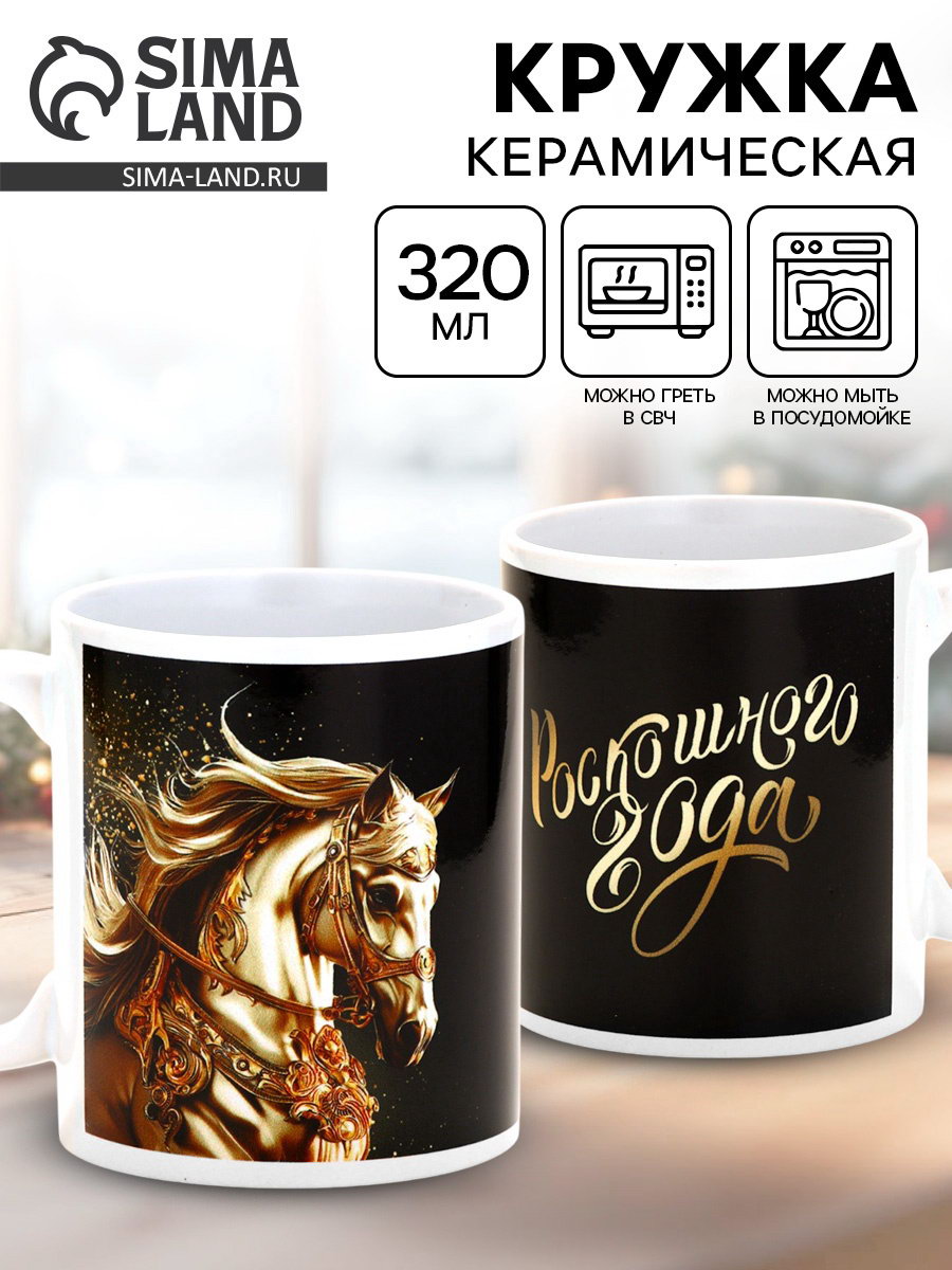 Кружка новогодняя керамическая "Роскошного года", лошадь, 320 мл, 320 мл., Дорого внимание, Китай