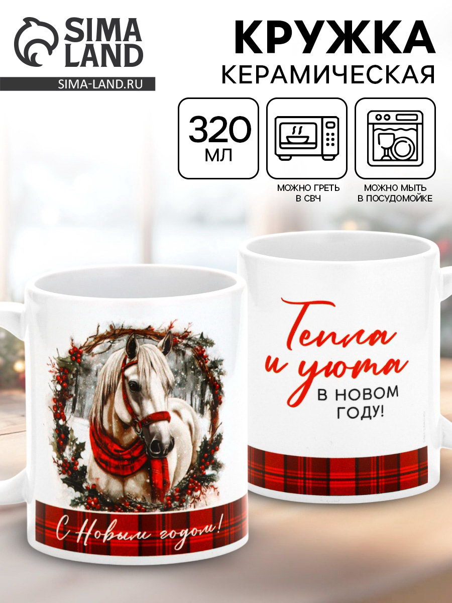 Кружка новогодняя керамическая "Уюта в Новом году", лошадь, 320 мл, 320 мл., Дорого внимание, Китай