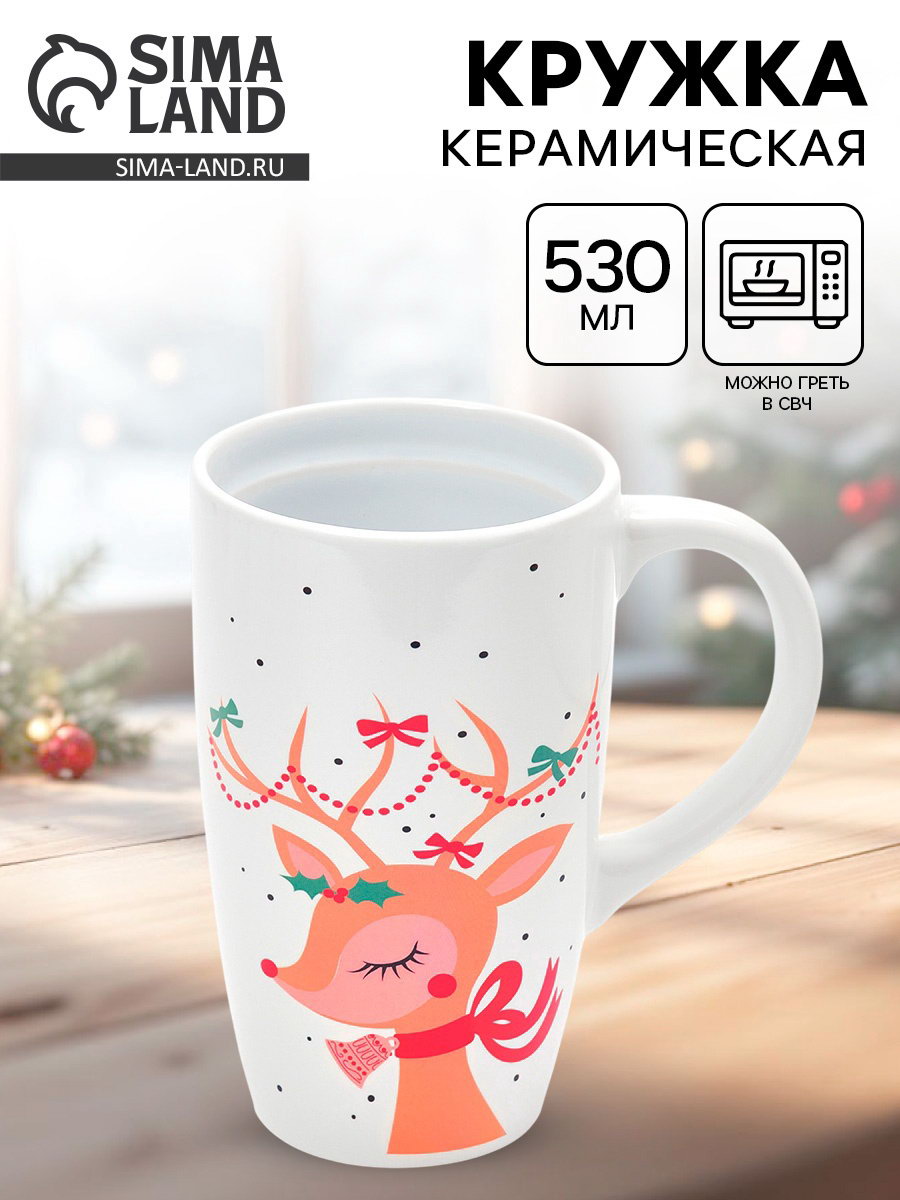 Кружка чайная новогодняя "Оленёнок", 530 мл, 8x14x8 см., Дорого внимание, Китай