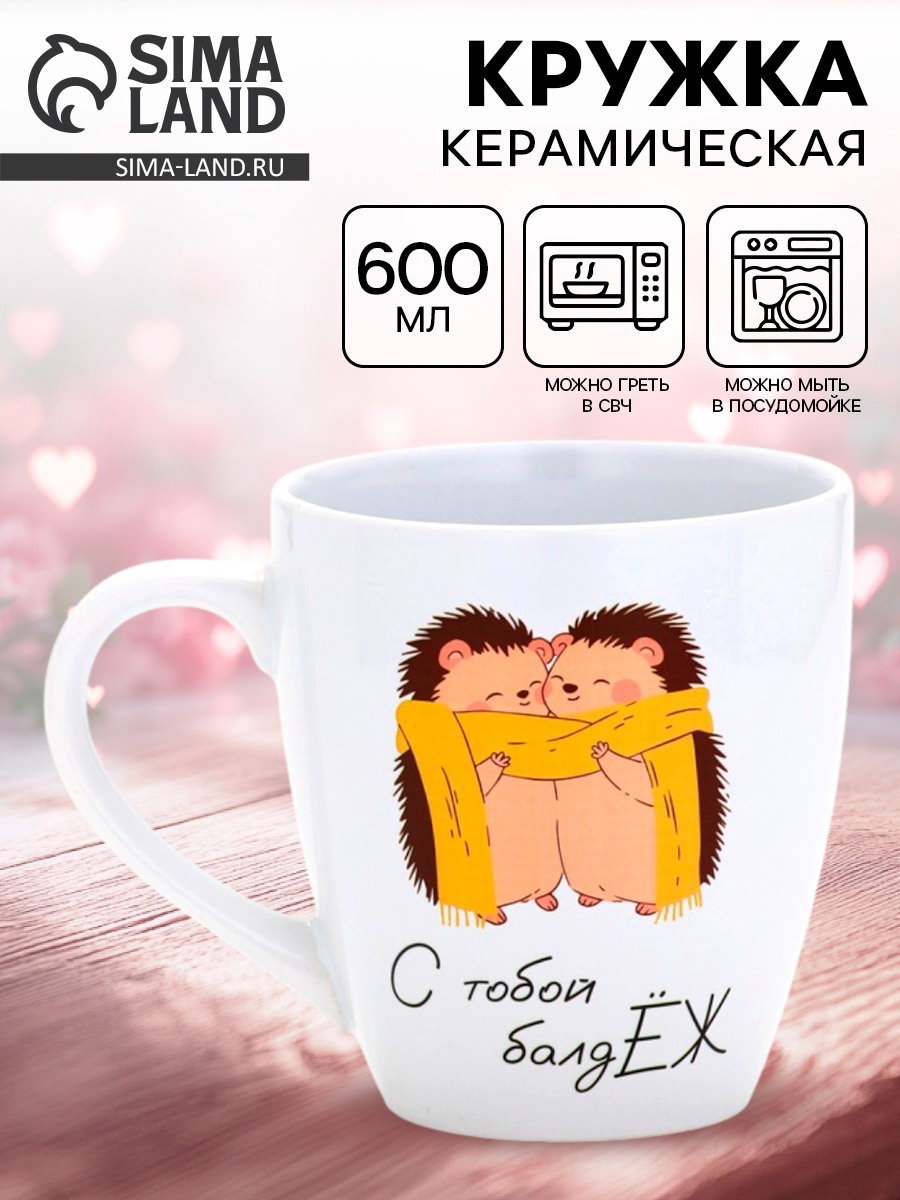 Кружка керамическая "С тобой балдЁж", белая внутри, 600 мл, 10x11.5x10 см., Дорого внимание, Китай